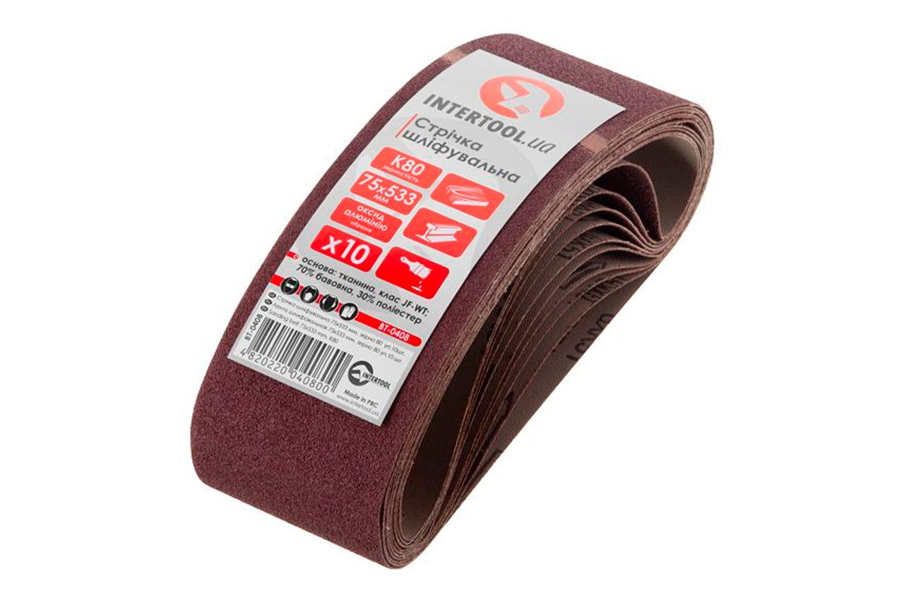 Лента шлифовальная Intertool - 75 х 533 мм Р80 (10 шт.)