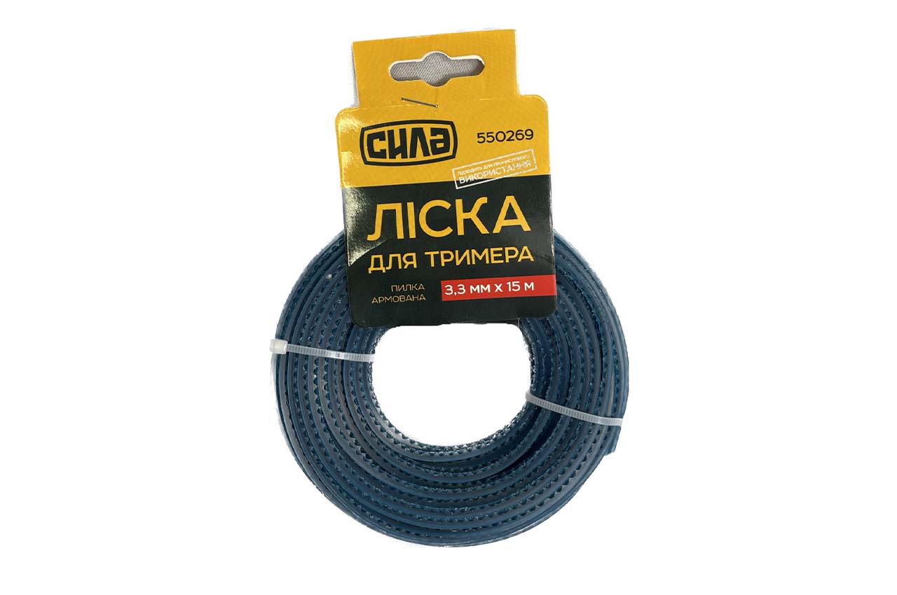 Леска для триммера Сила - 3,3 мм x 15 м квадрат пиранья армированная