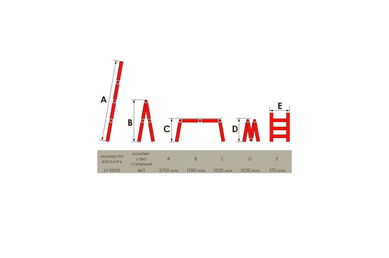Лестница трансформер Intertool - 3700 мм х 4x3 ступеней