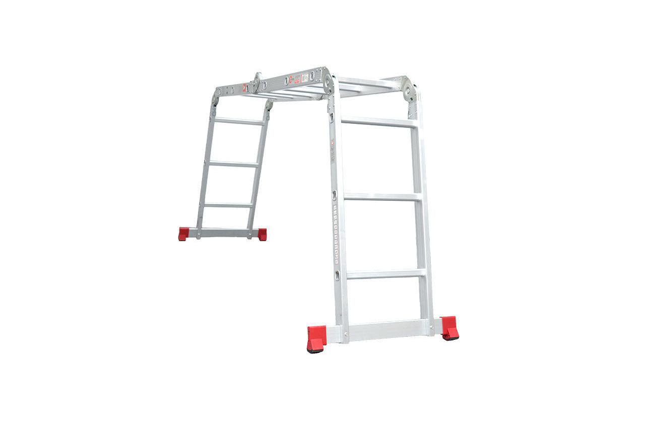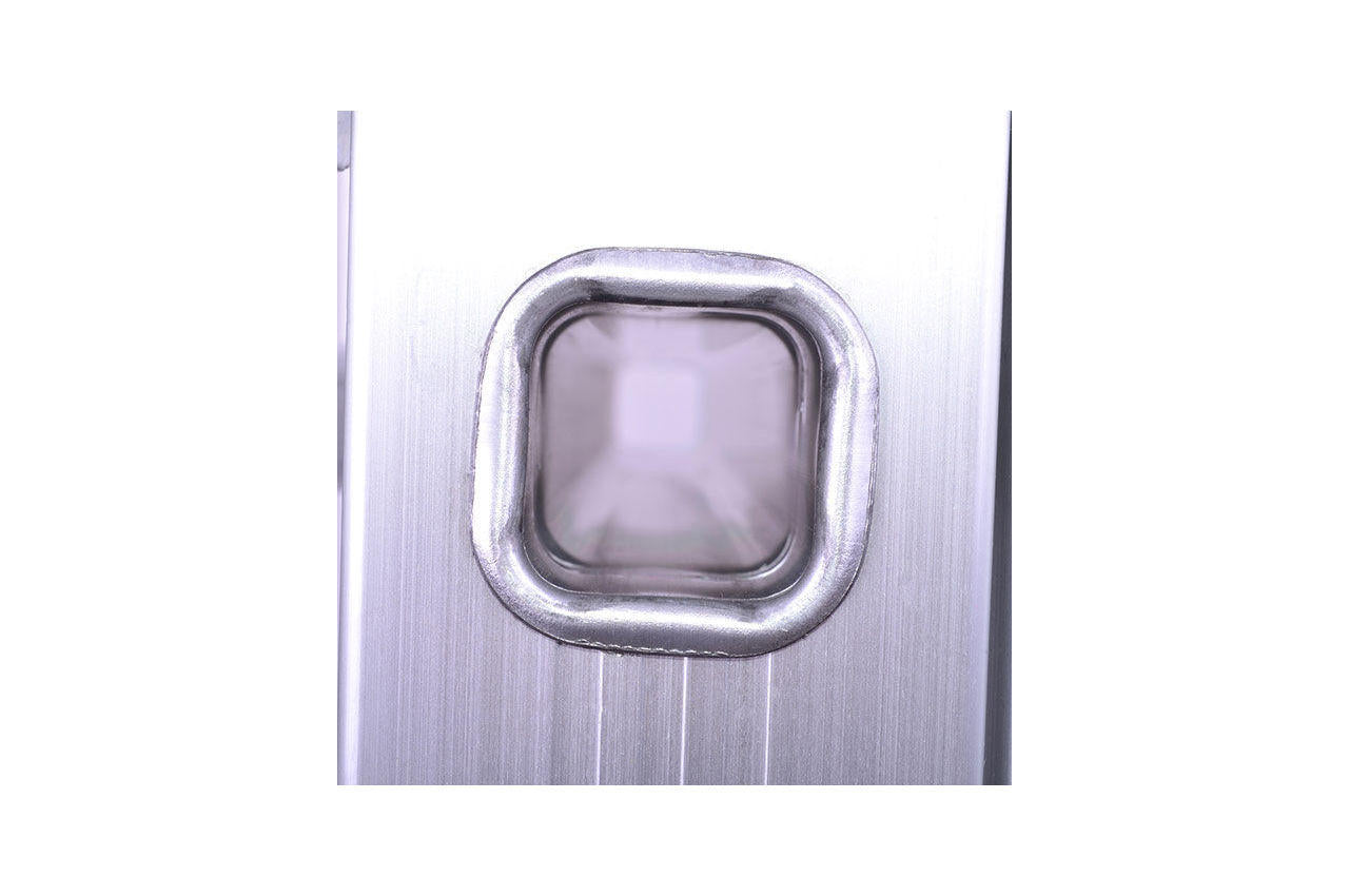 Лестница изготовлена из высокопрочного экструдированного алюминиевого профиля. Это обеспечивает высокую жесткость конструкции, а также способность выдержать нагрузку до 150 кг. Во избежание скольжения, лестницы укомплектованы надежными эластичными пластиковыми подошвами. Лестницы имеют прочные рифленые ступени, которые не дадут ноге соскользнуть. Высота в сложенном виде: 1030 мм; Ширина лестницы: 370 мм; Количество ступеней: 4x3 ед.; Максимальная нагрузка: 150 кг