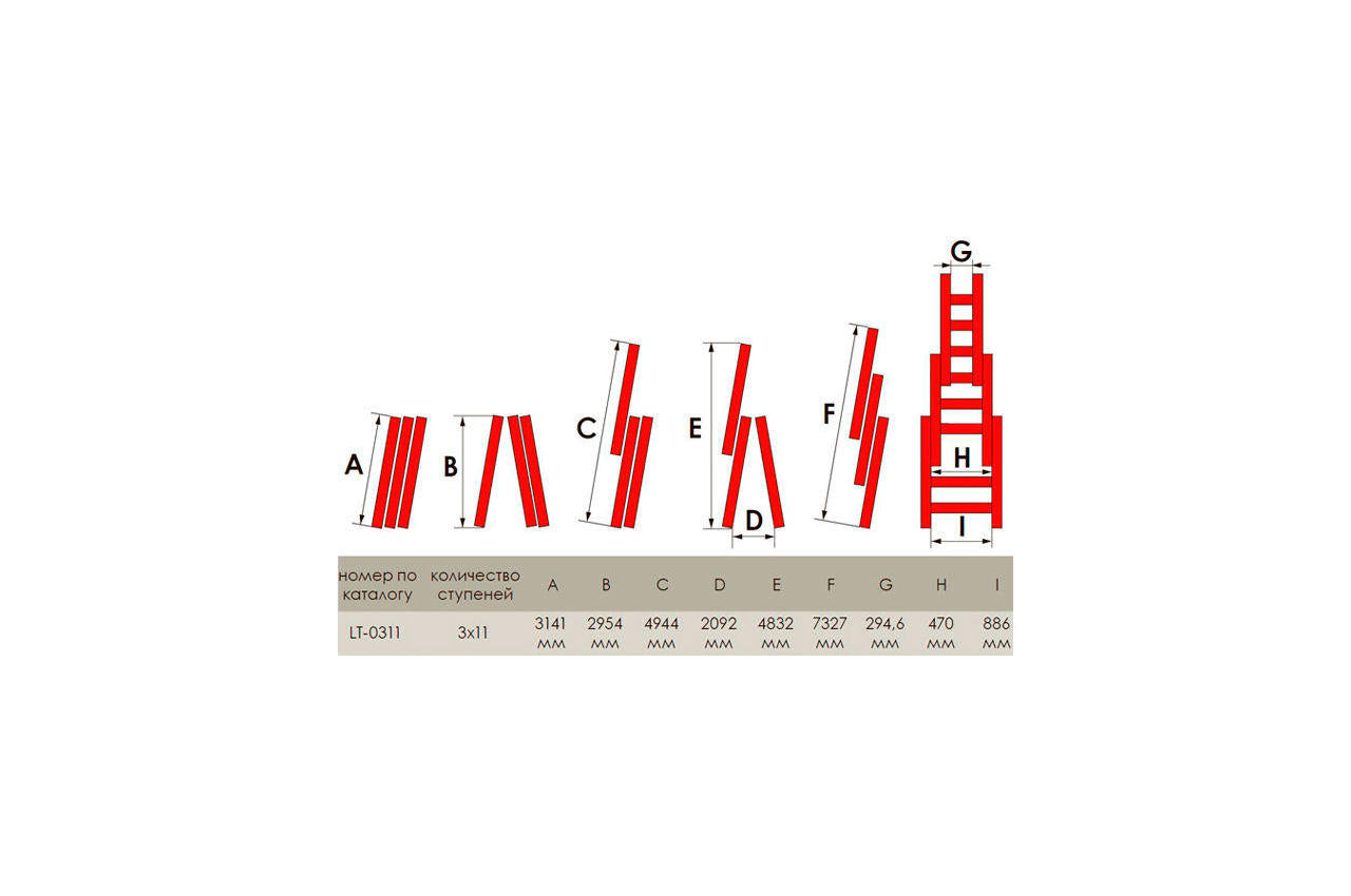 Лестница 3-х раскладная Intertool - 7327 мм х 3x11 ступеней