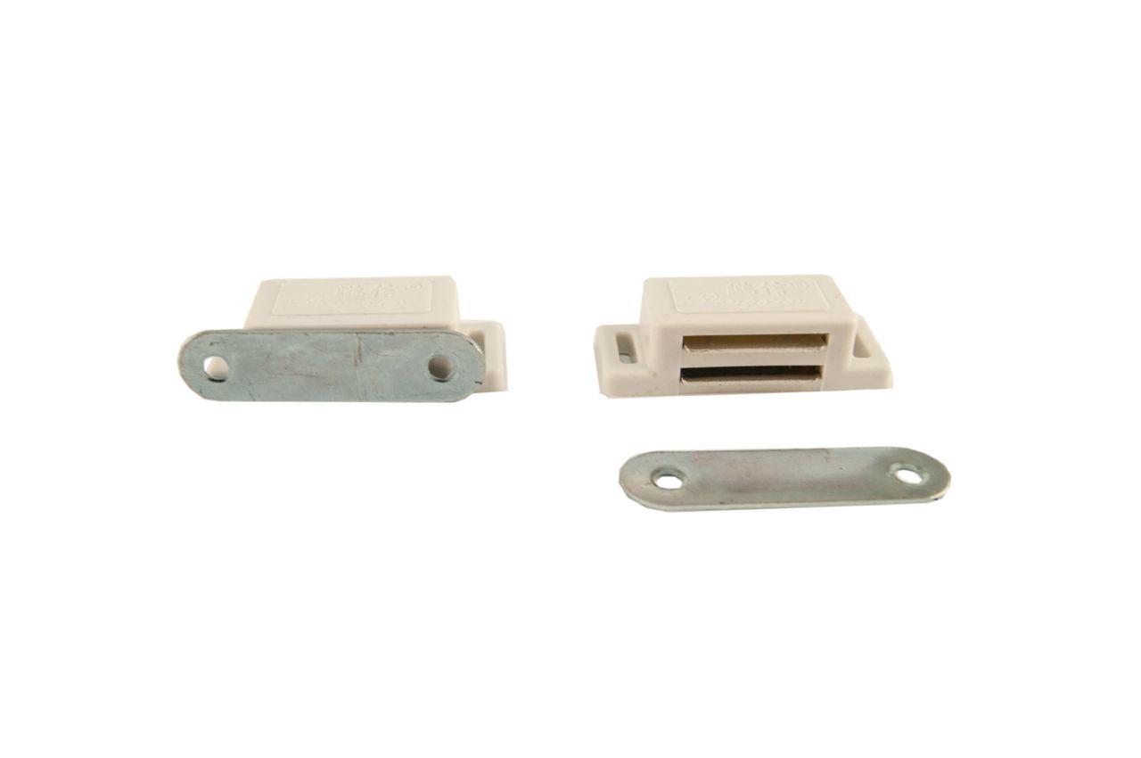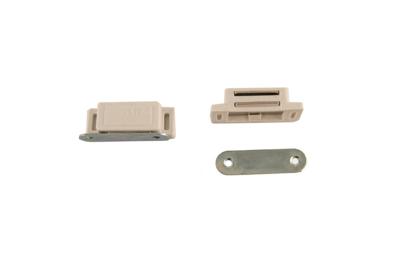 Служит для фиксации дверей мебели. Состоит из пластмассового корпуса, ферритового магнита и стальной «ответной части».