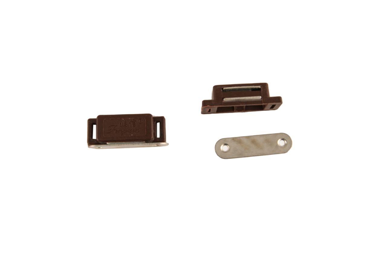 Служит для фиксации дверей мебели. Состоит из пластмассового корпуса, ферритового магнита и стальной «ответной части».