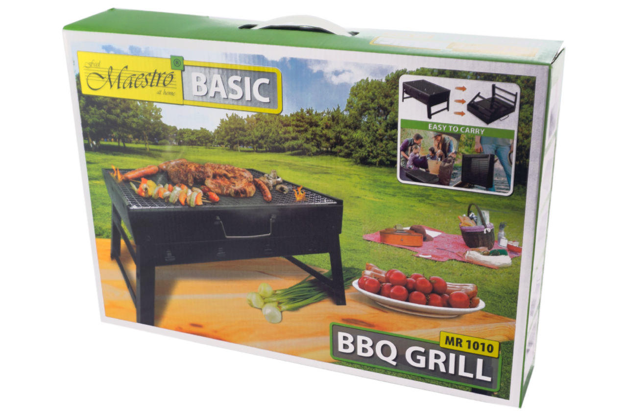 Мангал складной Maestro изготовлен из металла, толщина 0,5 мм. Имеет компактный размер 43 х 29 х 22 см. Решетка гриль изготовлена из металла, имеет хромированное покрытие, размер 43 х 29 см. Удобный механизм сборки по принципу «чемодана».