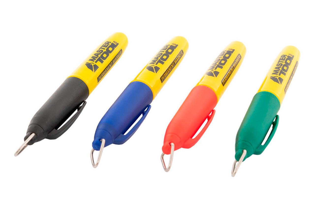 Маркер перманентный Mastertool – используются для маркировки пластика, стекла и других материалов. В упаковке 4 разноцветных маркера.