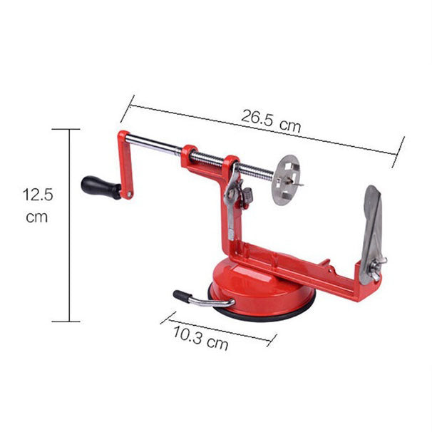 Нарезка картофеля спиралью осуществляется на шампур специальным ножом кольцевидной формы. Толщина нарезки 2 мм, что является оптимальным для жарки во фритюре. Так же устройство имеет специальную вакуумную присоску в нижней части для прочного крепления к столу.
