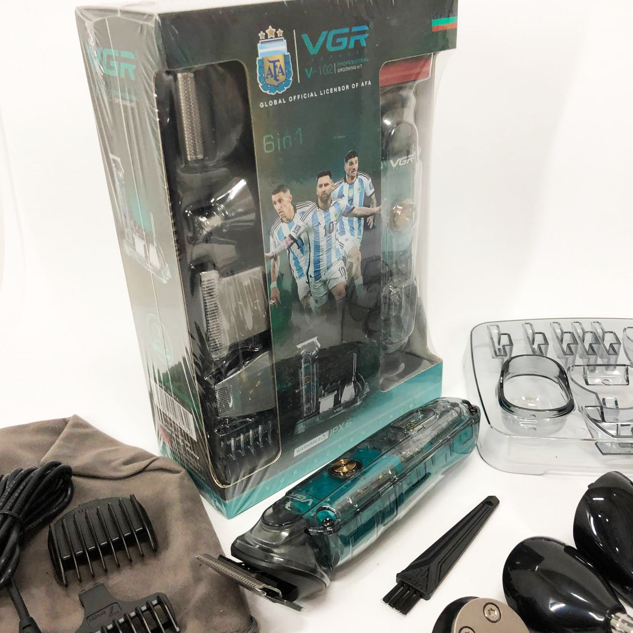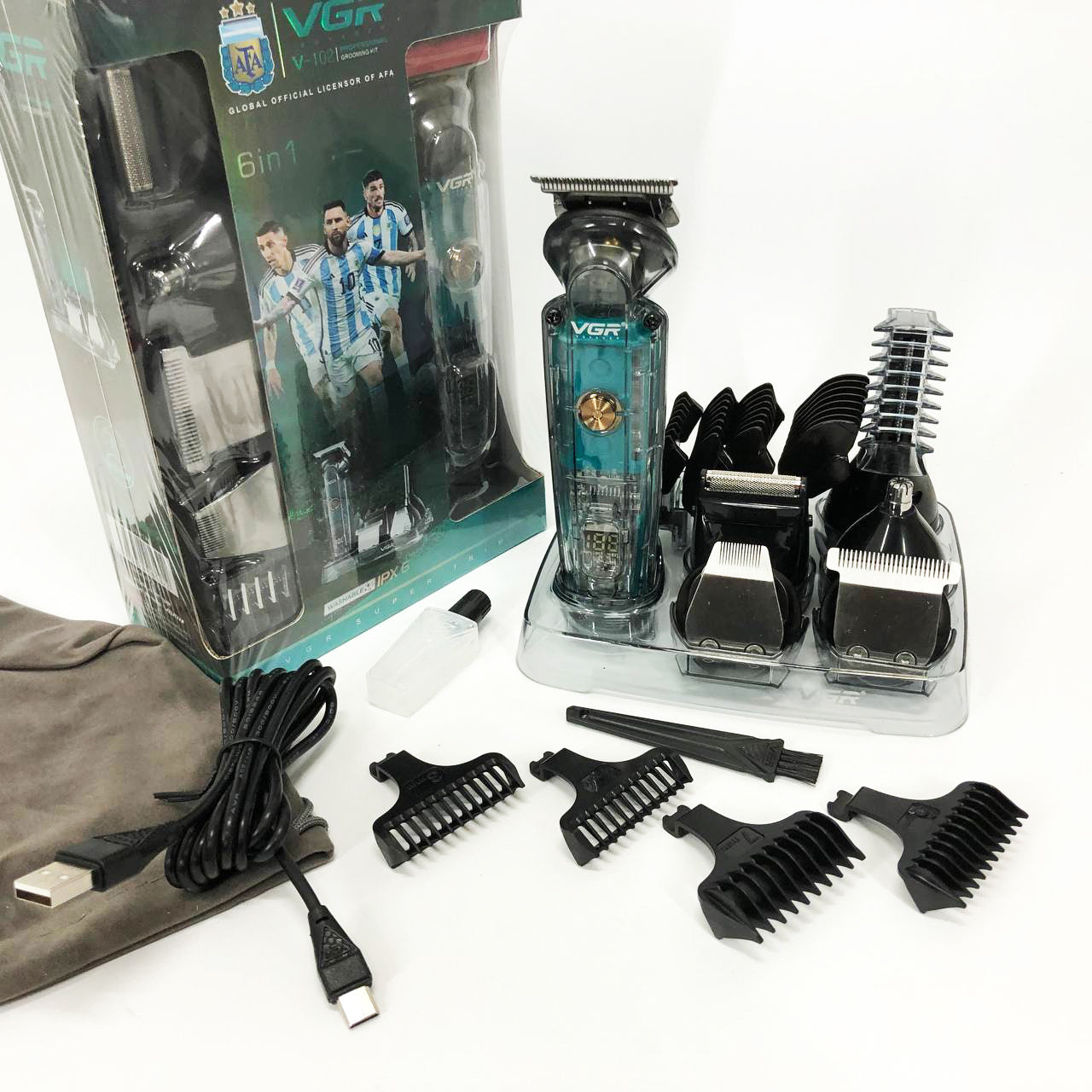 Машинка для стрижки волос, носа, бороды, бритва VGR V-102 5в1 беспроводной триммер с дисплеем