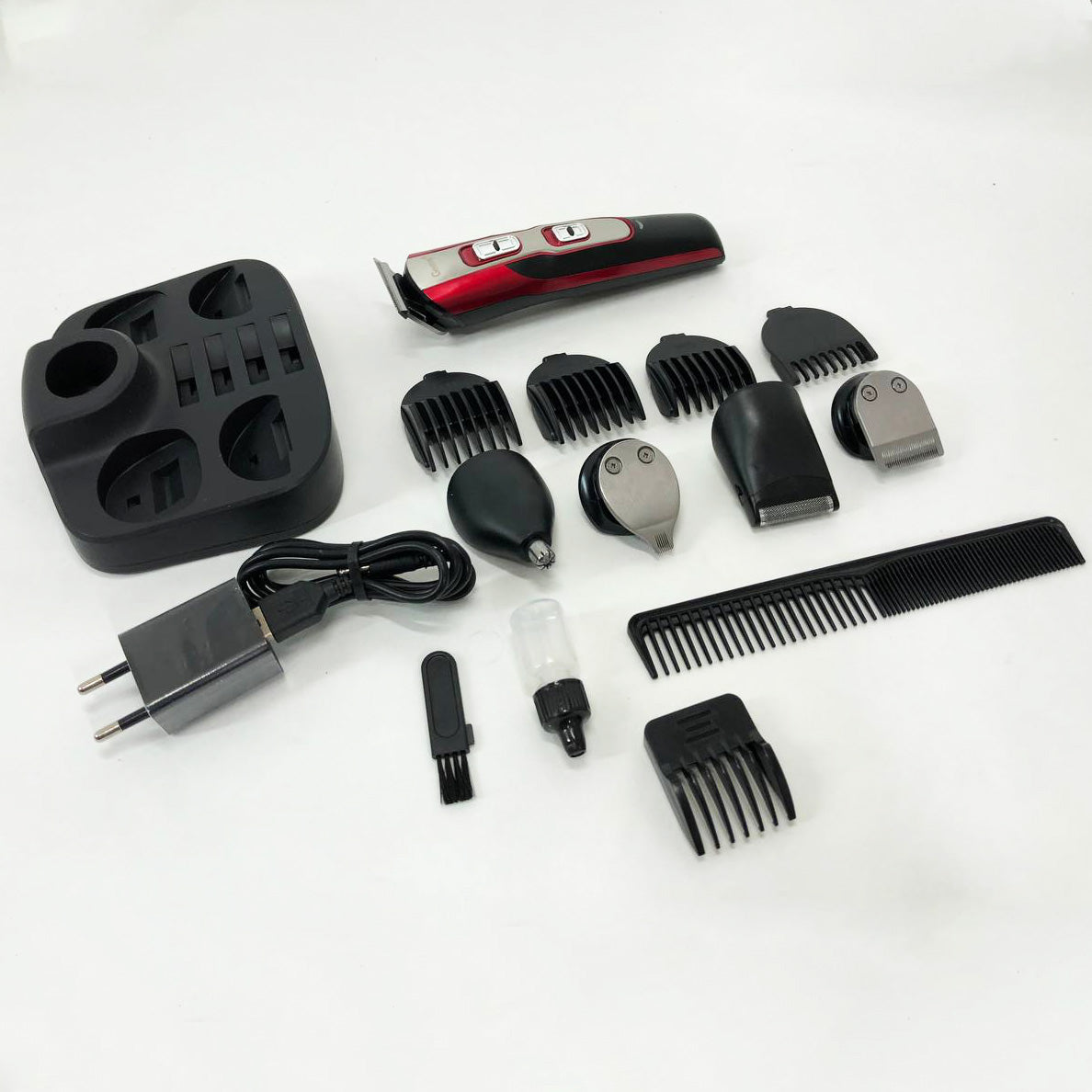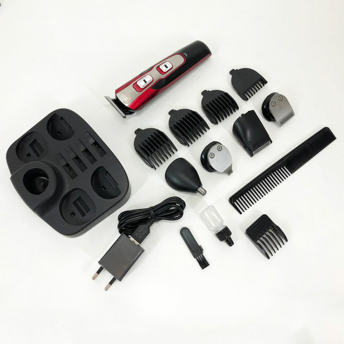 Машинка для стрижки 10в1 GEMEI GM-592, окантовочная машинка, подстригательная машинка. Цвет: красный
