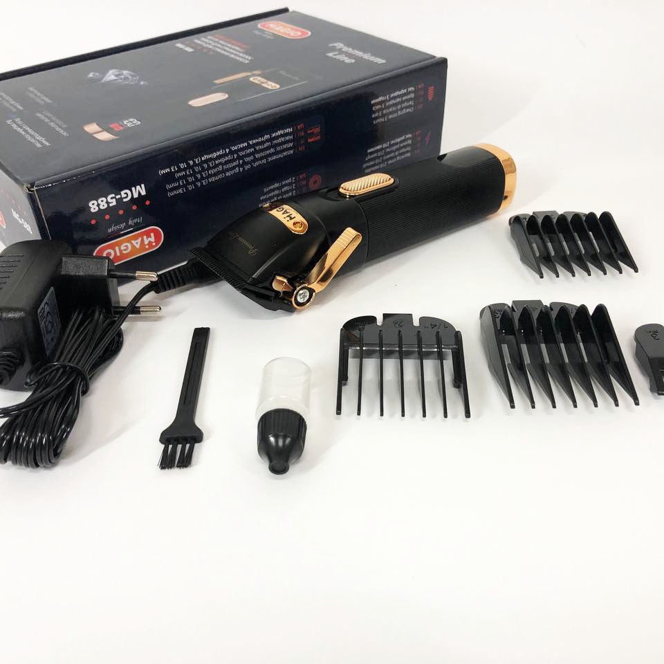 Машинка для стрижки волос MG-588 позволяет не только экономить время, избегая очередей и визитов к парикмахеру, но и в любой момент корректировать прическу. Такой аксессуар будет просто незаменим для тех, кто хочет выглядеть безупречно. Он имеет стильный дизайн и удобен в использовании. Мощный, но тихий мотор работает эффективно и без вибраций. Легкая и компактная, эта семейная машинка для стрижки волос очень удобна в использовании и подходит как для взрослых, так и для детей. В набор также входит щеточка для чистки и масло.