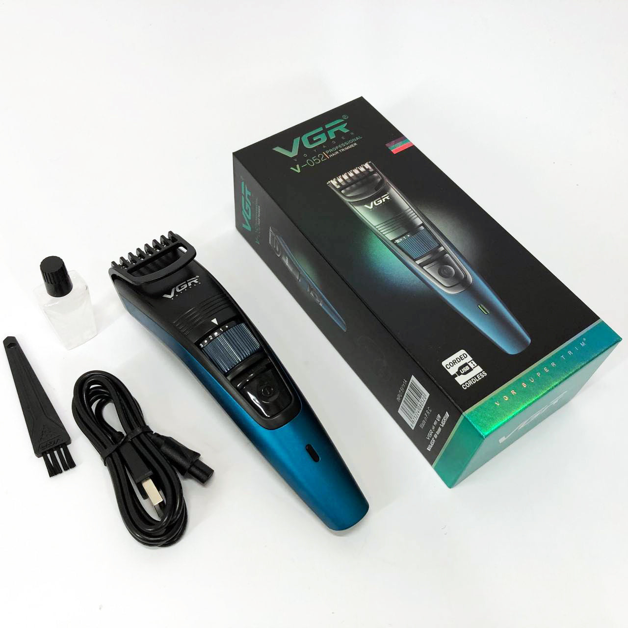 Машинка для стрижки волос VGR V-052 - универсальный гигиенический прибор, который оснащен телескопической насадкой с регуляцией длины стрижки от 0,5 до 10 мм, поэтому подходит для стрижки волос на голове, для ухода за бородой а также в качестве бодигруммера. Машинка беспроводная, питается от встроенного аккумулятора, полной зарядки которого хватает на 90 минут автономной работы.