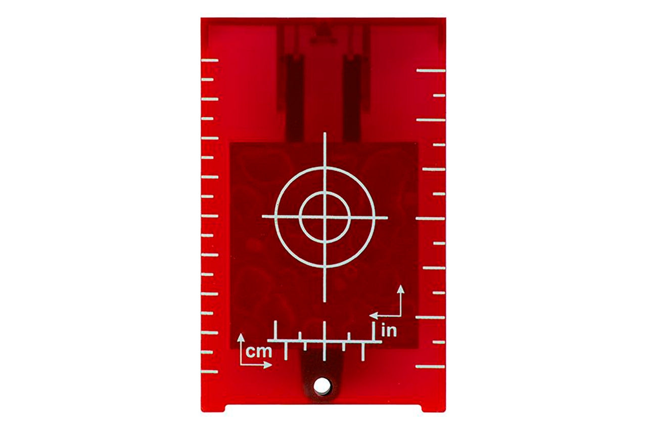 Наличие дюймовой и метрической разметки поможет указать угол или максимально точно выровнять поверхности. Мишень крепится с помощью магнита к металлическим деталям и конструкциям или подвешивается на стену с помощью отверстия на гвоздь или саморез. Также его можно легко положить горизонтально.