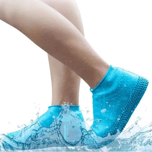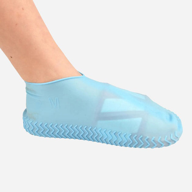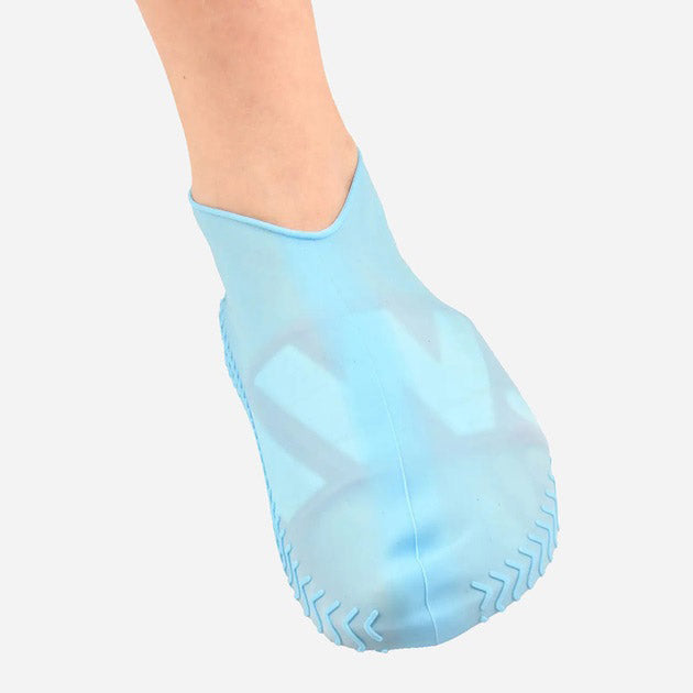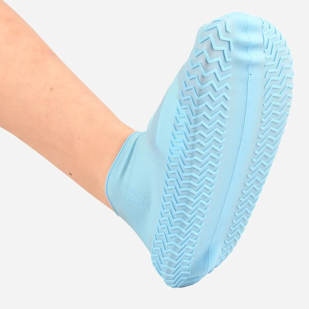 Многоразовые бахилы-чехлы L (41-45 размер) для обуви силиконовые от воды и грязи. Цвет: голубой
