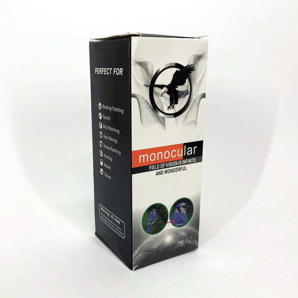 • Монокуляр защищен от влаги и ударопрочный, он имеет заглушки спереди и сзади. Также в комплекте прилагается штатив, для того что бы, вы могли без колебания рук, все четко разглядеть.