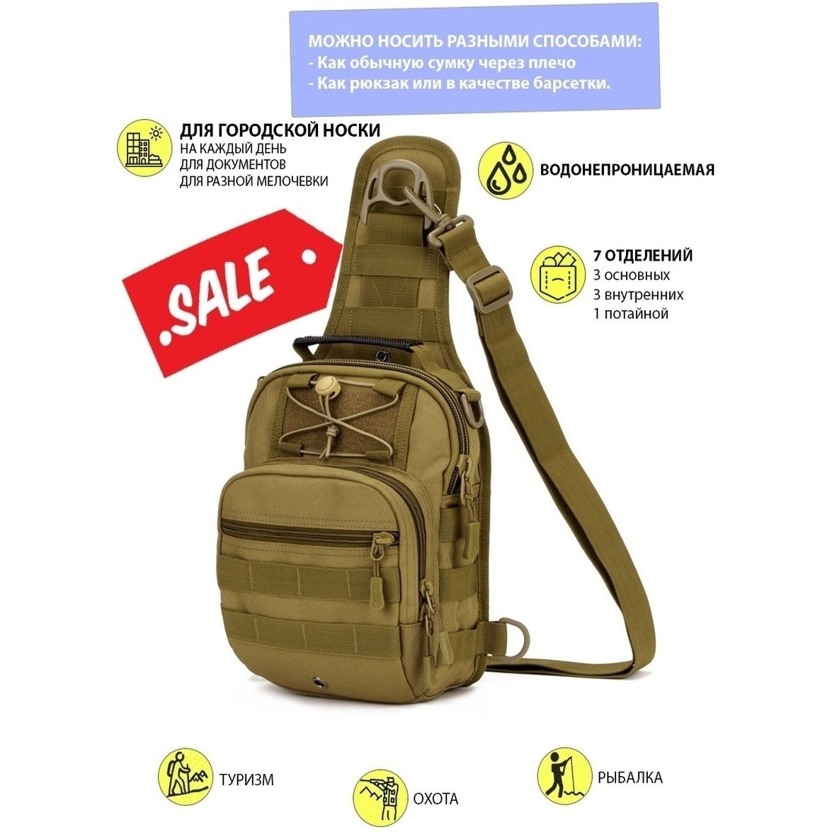 Мужская тактическая многофункциональная нагрудная сумка-слинг через плечо с системой MOLLE из кордуры!