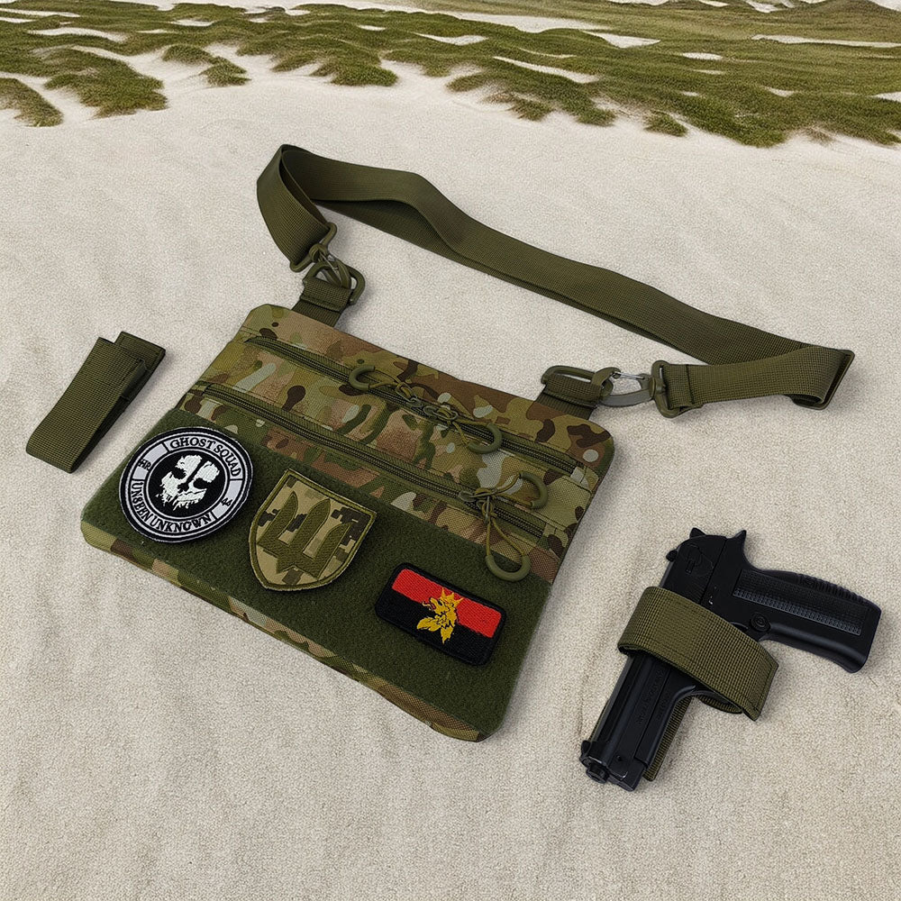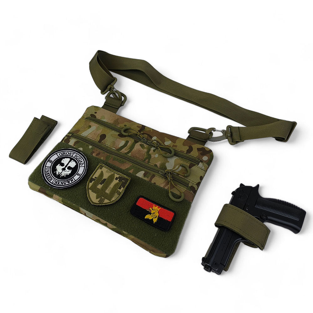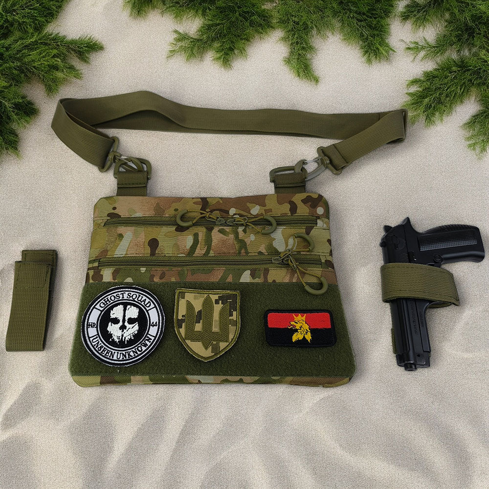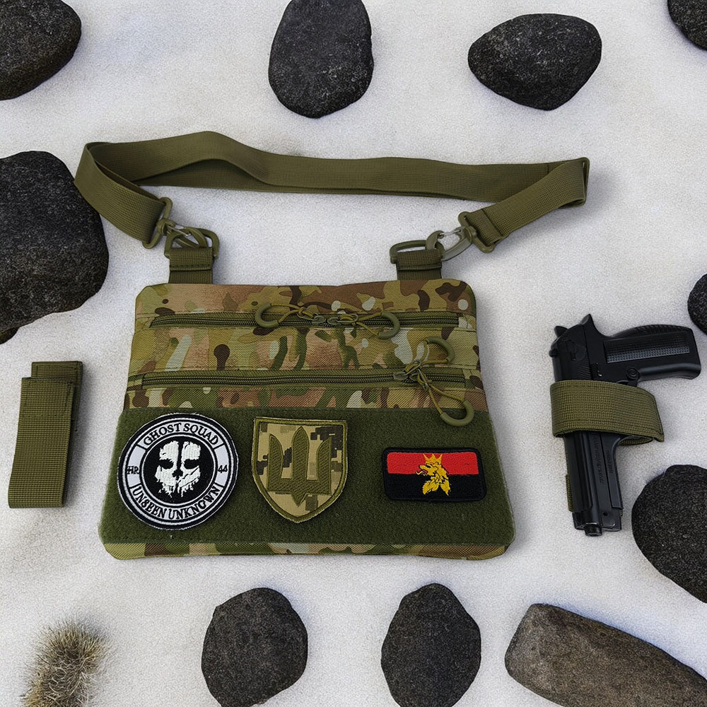 - Съемная кобура и чехол для магазина: Сумка укомплектована съемной кобурой для пистолета и съемным чехлом для магазина, что гарантирует надежную фиксацию оружия.