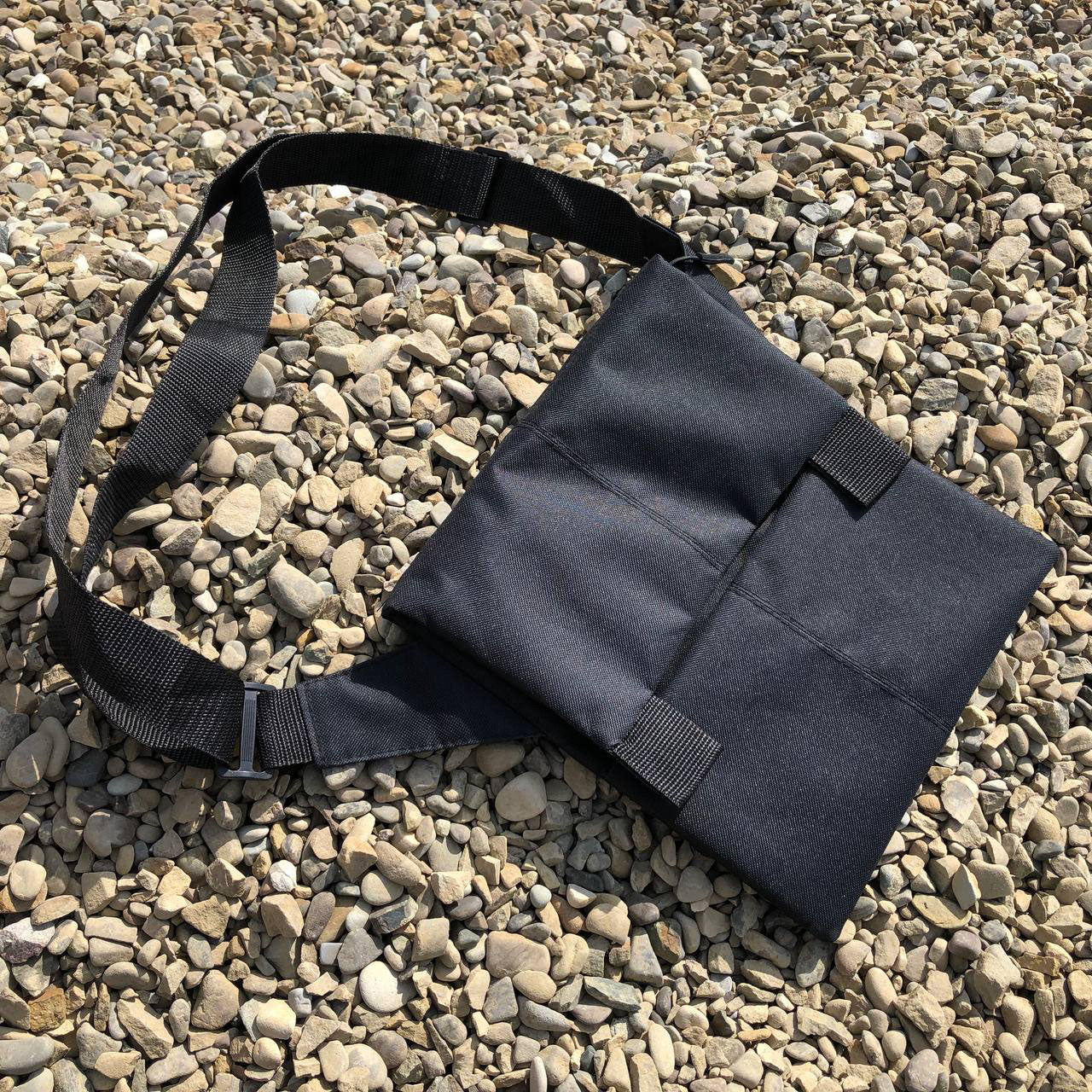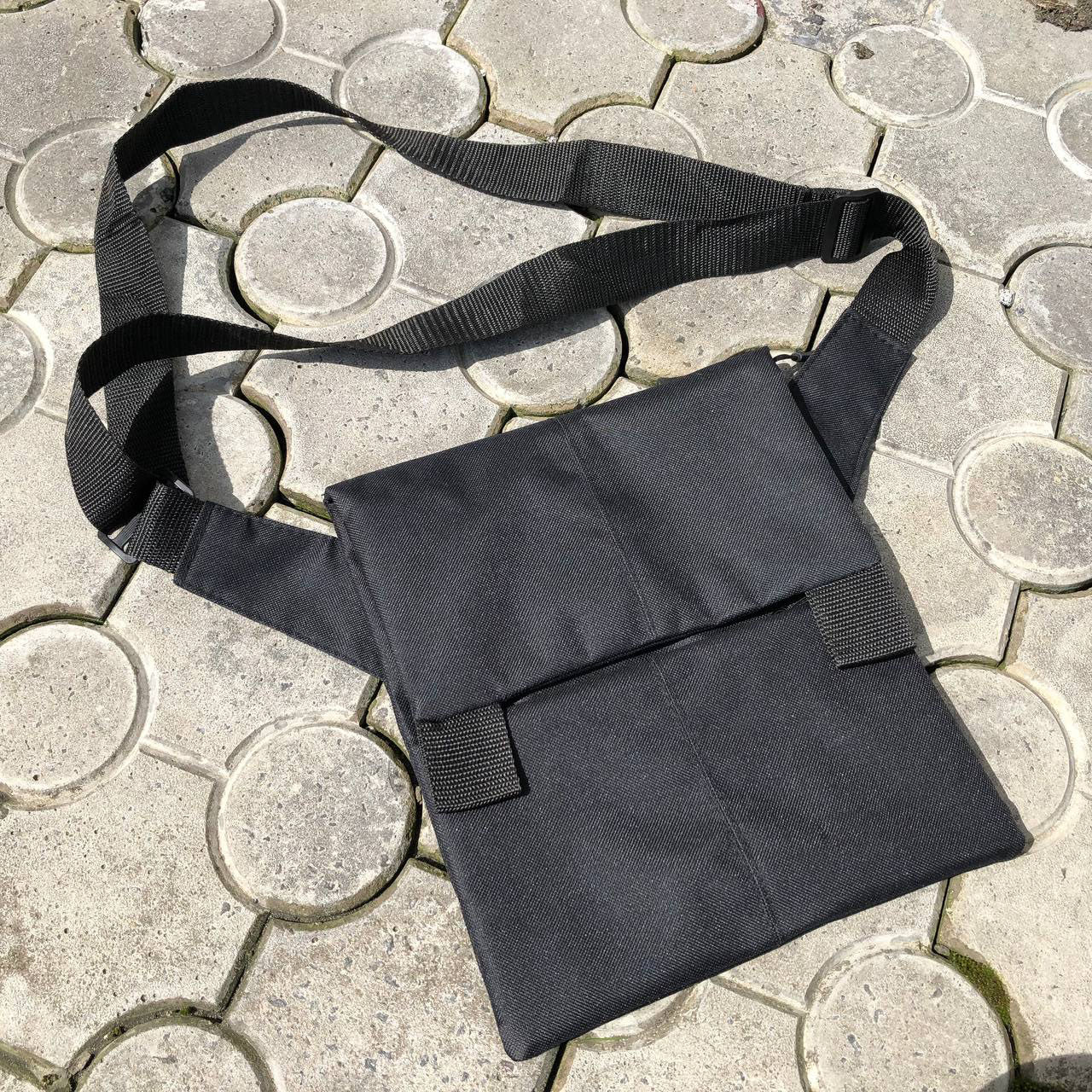 Сумка имеет удобный и практичный ремешок, который можно отрегулировать по длине благодаря специальному фиксатору, поэтому Вы сможете её носить как на уровне пояса, так и на уровне грудной клетки для быстрого доступа к важным элементам, таким как: фонарик, газовый баллончик или же пневматический пистолет.