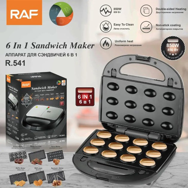 Мультимейкер 6в1 RAF R.541 Гриль прижимной сэндвичница вафельница орешник бутербродница