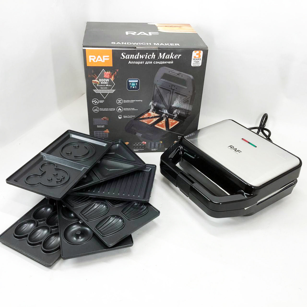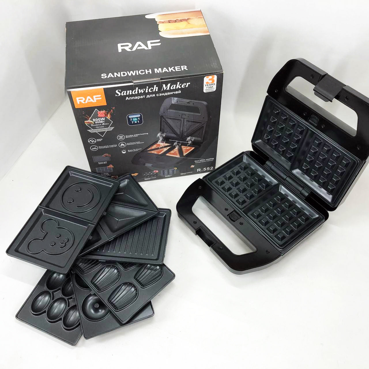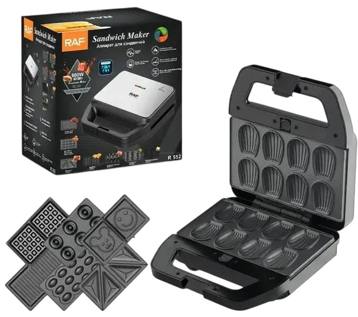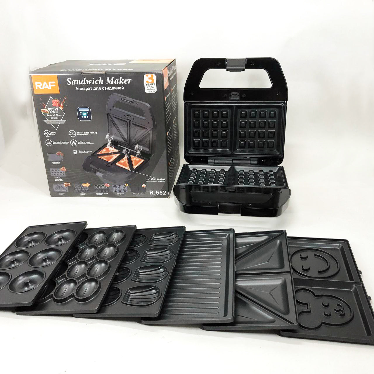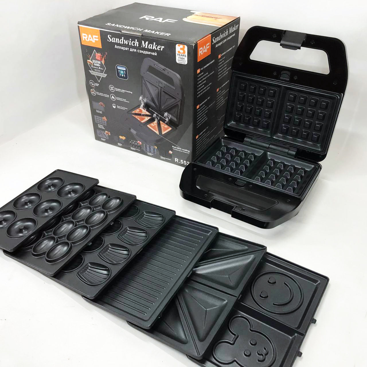 Мультимейкер RAF R.552 – 7 в 1: вафельница, гриль, сэндвичница, пончики, орешки, кексы, печенье, 800 Вт