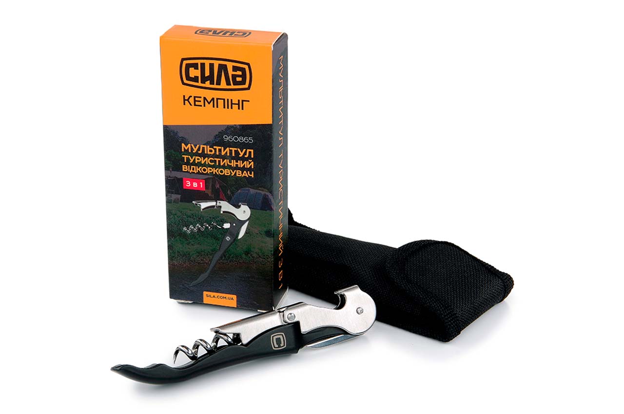 Мультитул Сила - 3-в-1. Комплектация: лезвие ножниц; штопор; открывачка бутылок.