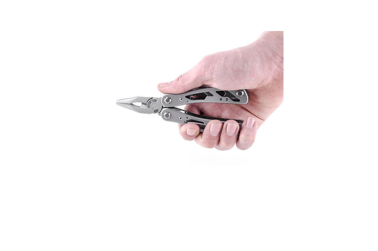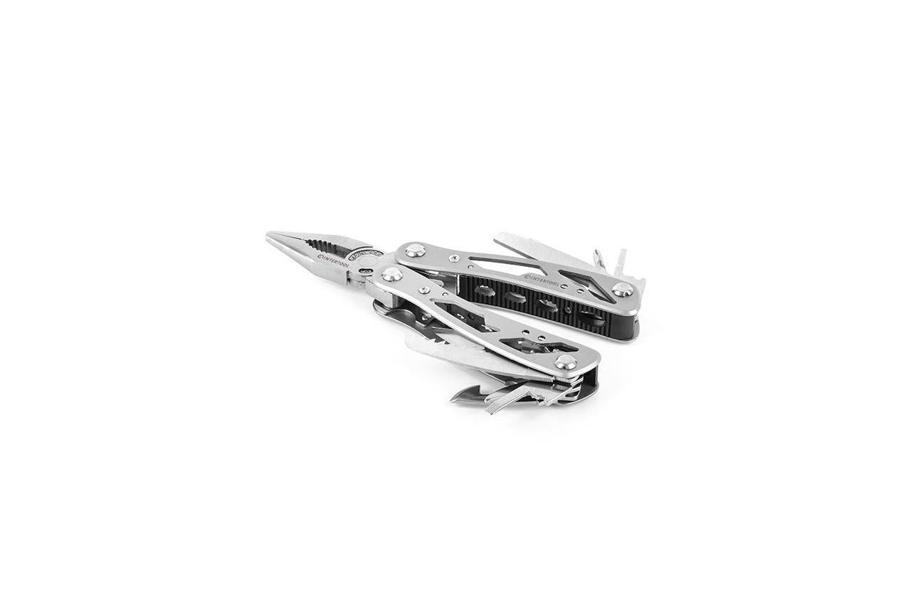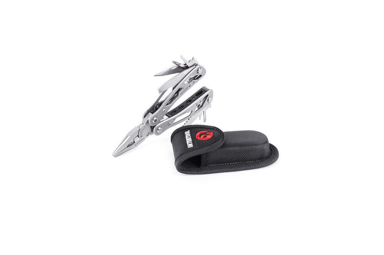 Инструмент выполнен из полированной нержавеющей стали. Эргономичный корпус сделает его использование максимально комфортным в любых условиях, а высокопрочный тканевой чехол упростит его хранение и даст возможность носить его просто на поясе. Мультитул содержит: плоскогубцы, кусачки, малый нож, большой нож, пила по дереву, открывалка для бутылок, открывалка для консерв, отвертка под прямой шлиц 3 мм, отвертка под прямой шлиц 6 мм, отвертка под прямой шлиц 8 мм, отвертка крестовая PH1 и напильник. Количество функций: 12; Длина в сложенном виде: 105 мм; Материал клинка: нержавеющая сталь 2Cr; Длина лезвия ножа: 60 мм; Толщина рукоятки: 17 мм; Тип замка: Slip joint; Инструменты: плоскогубцы; кусачки; нож малый; нож большой; пила по дереву; открывалка для бутылок; открывалка для консервов; отвертка шлицевая SL 3, 6, 8мм; отвертка крестовая «Phillips» PH1; напильник двухсторонний; Общая длина: 165 мм; Материал рукоятки: нержавеющая сталь скелетного типа