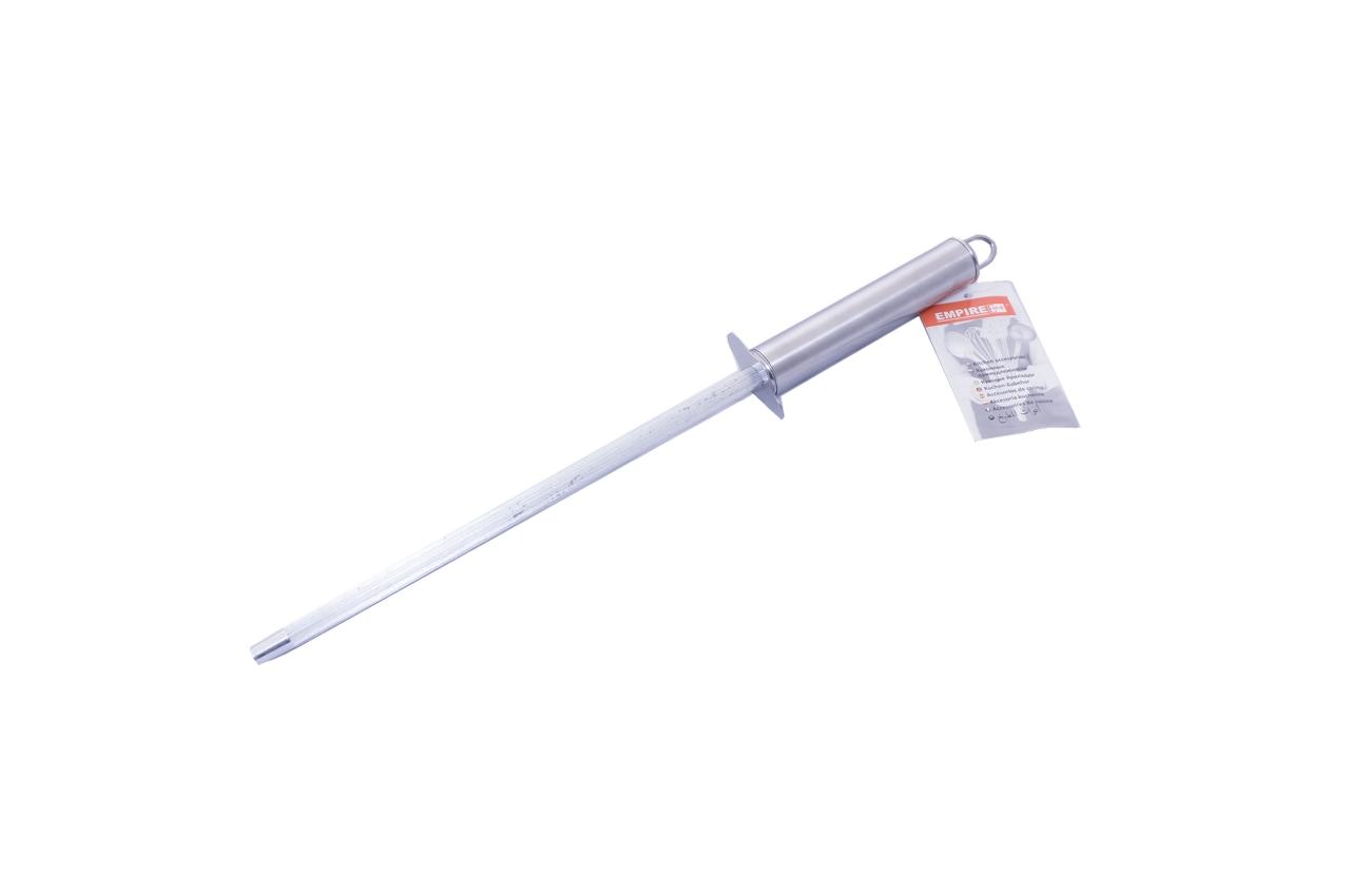 Мусат профессиональный (точило для ножей) Empire Club (длина 455мм; рабочая поверхность - 300мм) с полуовальным сечением (20х6мм). Инструмент для правки лезвий ножей. Предназначен для профессионального и домашнего интенсивного использования. Ручка бакелитовая, усиленная, с кольцом для подвеса. Легок в уходе, не впитывает запахи и не окрашивается. Можно мыть в посудомоечной машине.