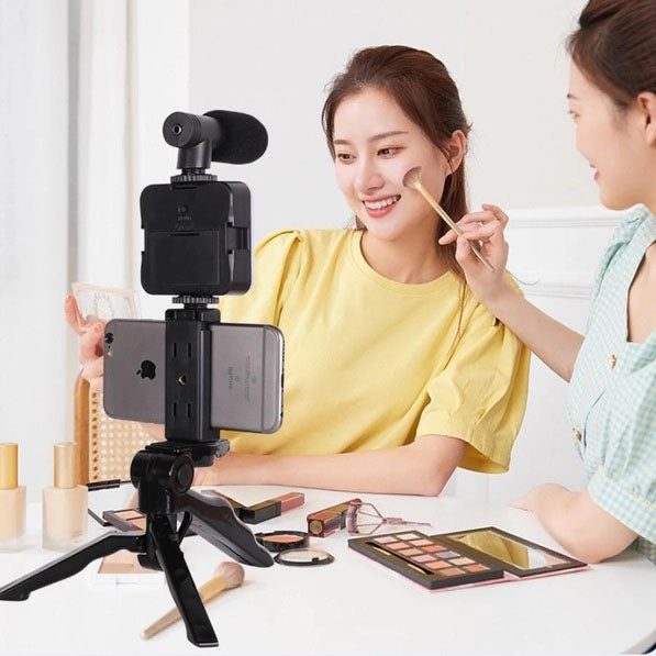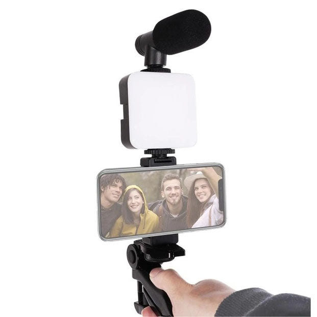 Набор блогера 4в1, тренога для телефона с микрофоном и вспышкой Штатив трипод для селфи и видео