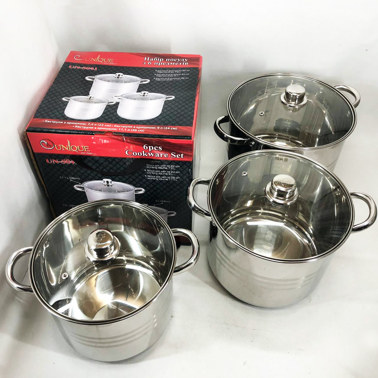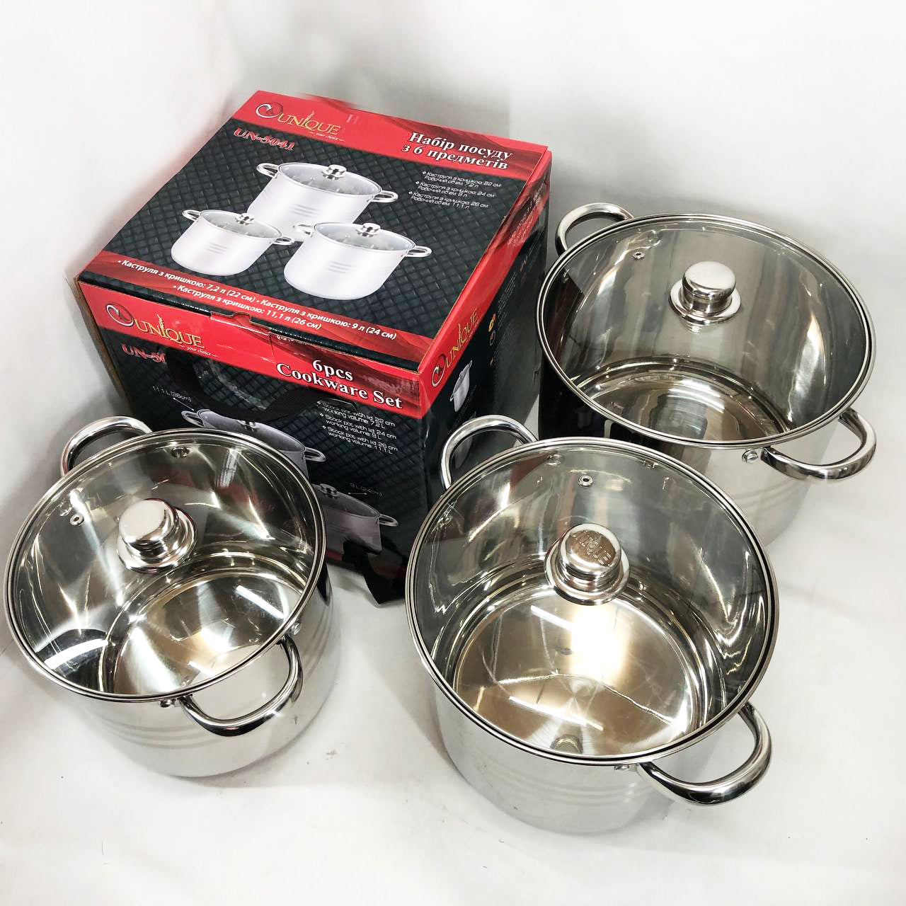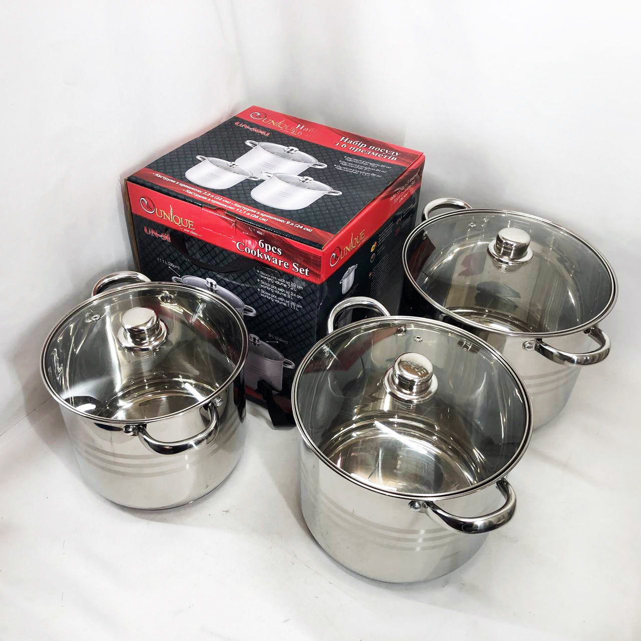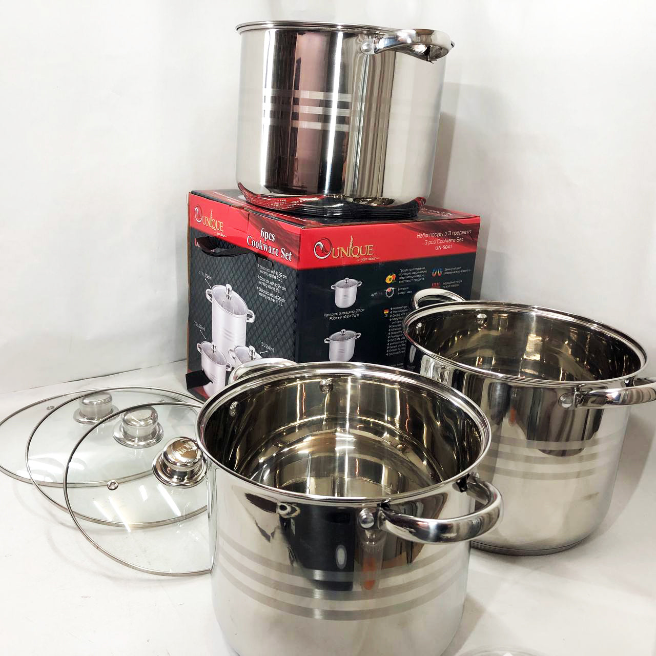 Набор больших кастрюль Unique UN-5041 из нержавеющей стали 5-ти слойным дном с крышками