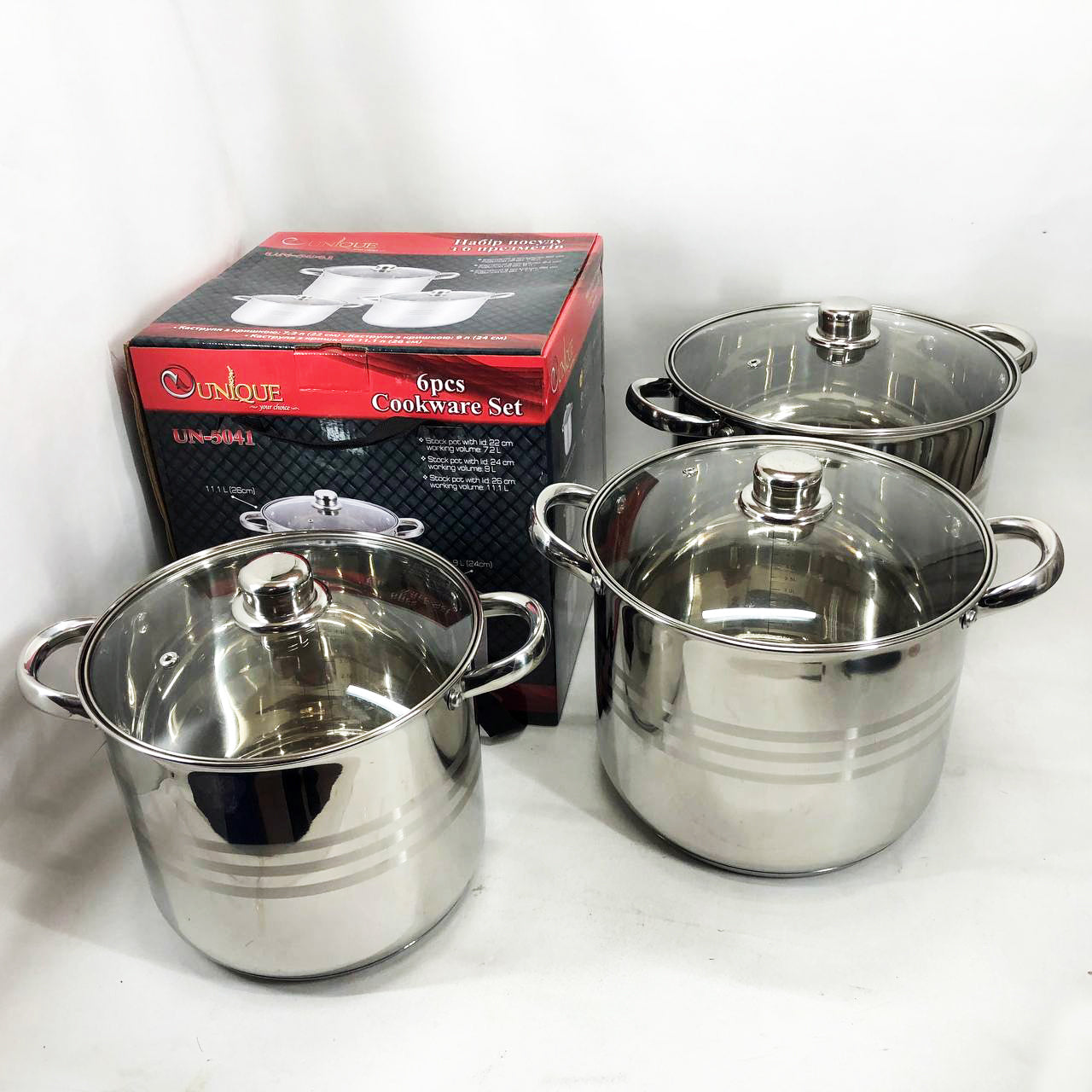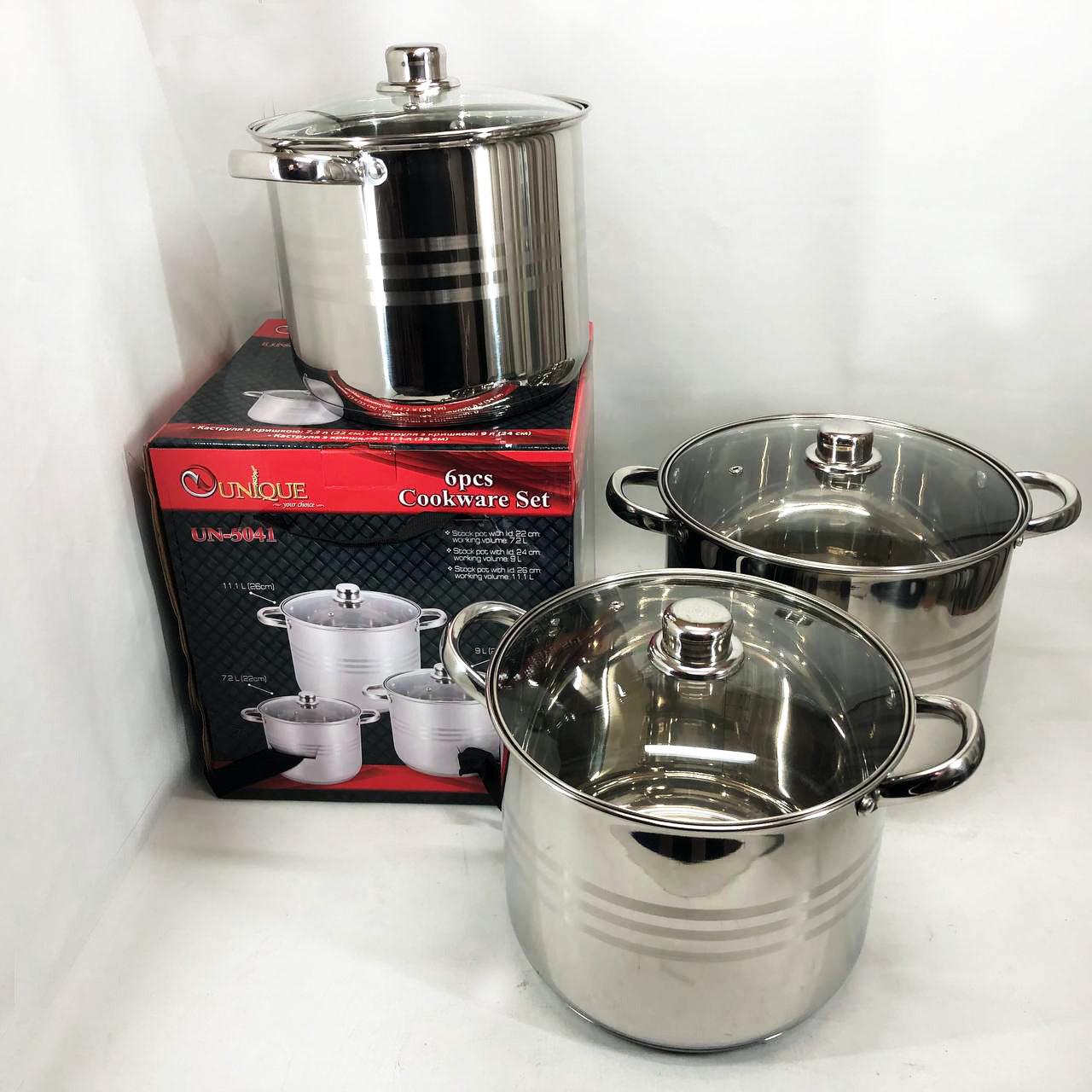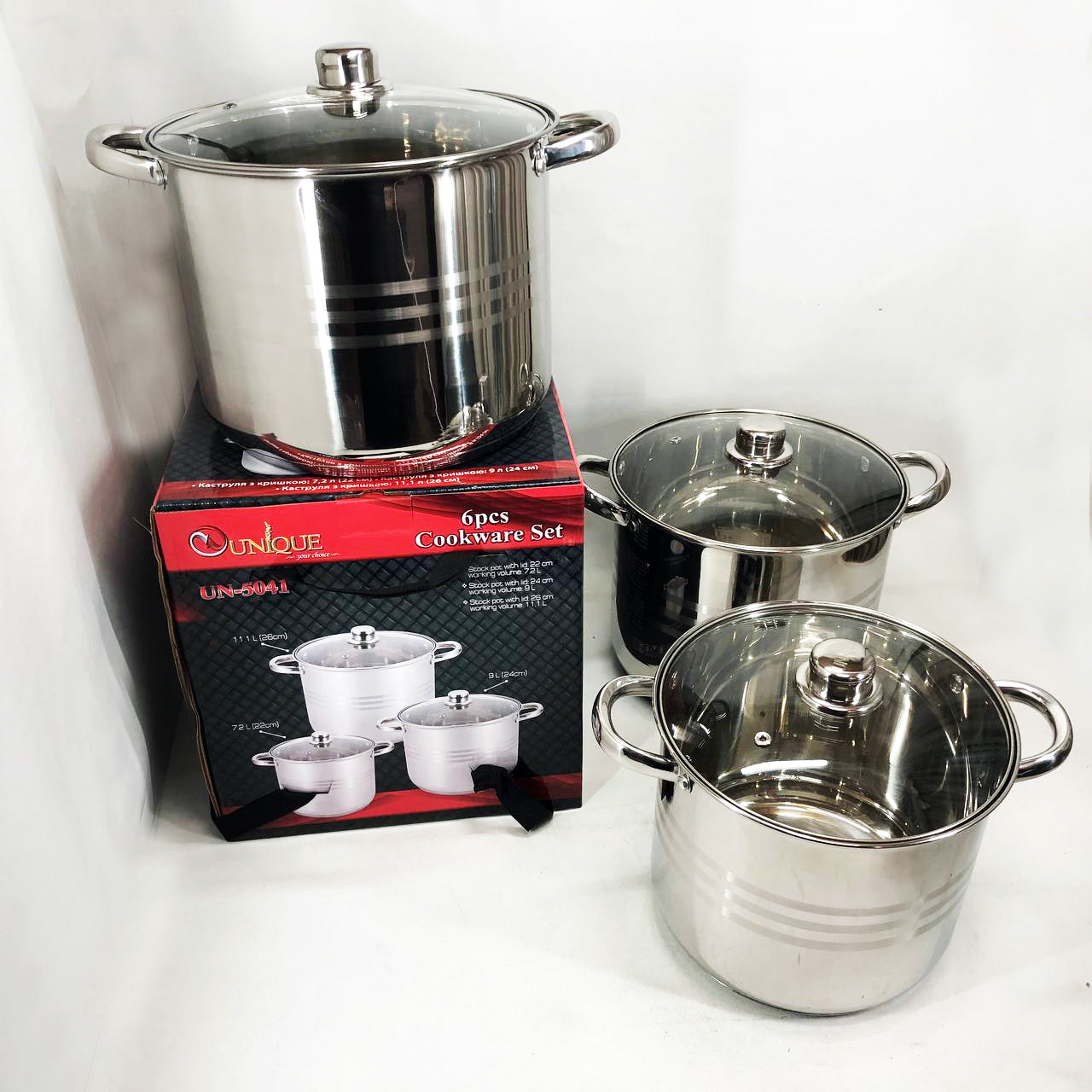 Набор больших кастрюль Unique UN-5041 из нержавеющей стали 5-ти слойным дном с крышками