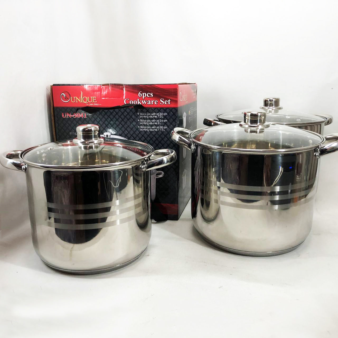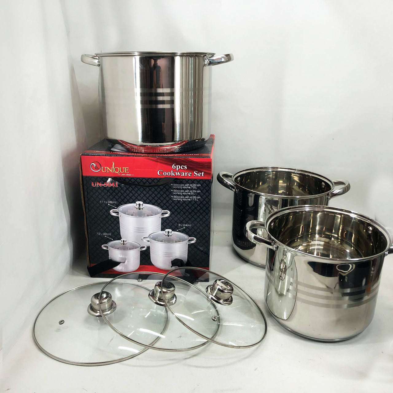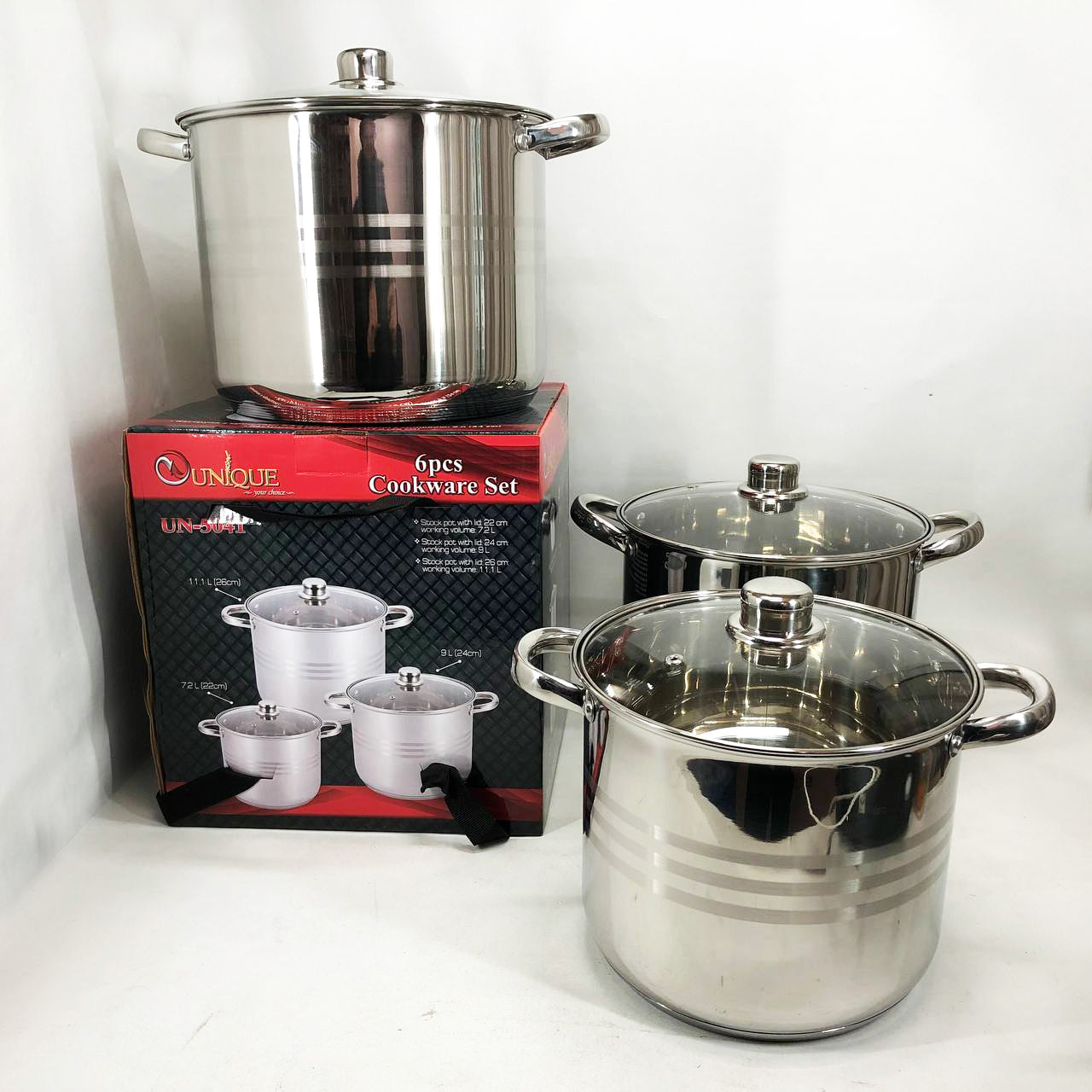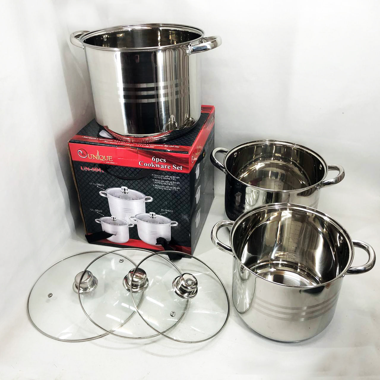 Набор больших кастрюль Unique UN-5041 из нержавеющей стали 5-ти слойным дном с крышками