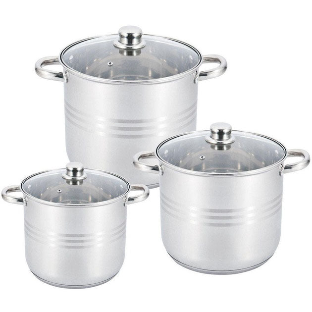 Высококачественный набор посуды из нержавеющей стали с 5-ти слойным термоаккумулирующим дном, обеспечивает быстрый и равномерный нагрев по всему основанию, а также сохранение тепла в течении длительного времени. Совместим со всеми видами плит, включая индукционные.