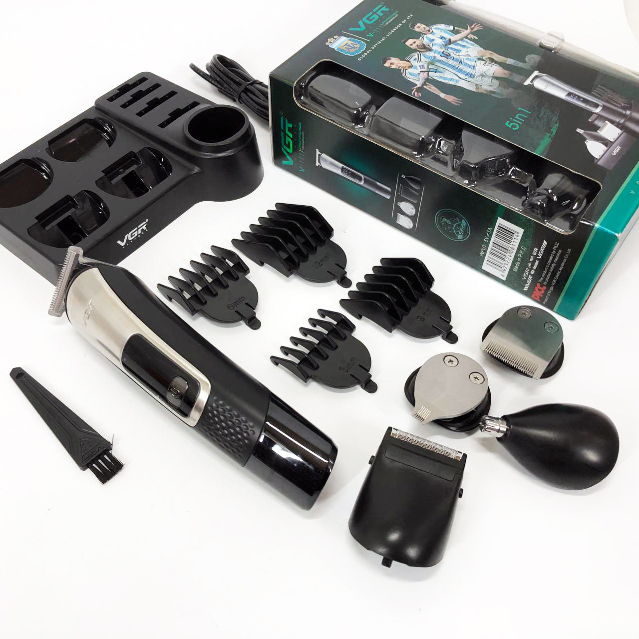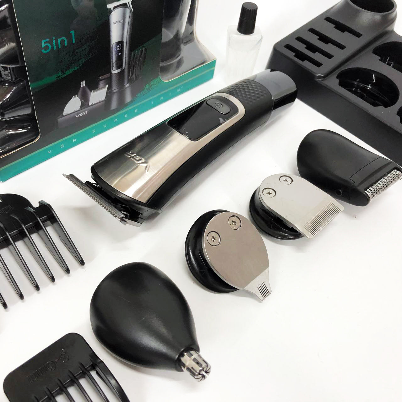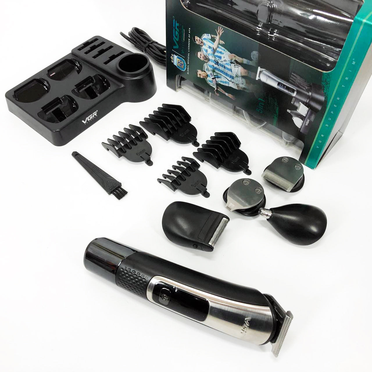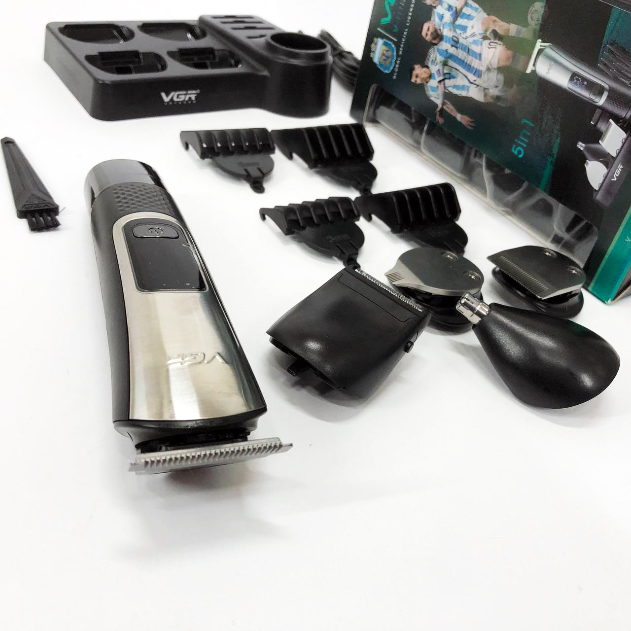 Набор для стрижки VGR 5 в 1 V-111, 9 насадок, Аккумуляторный универсальный триммер для стрижки