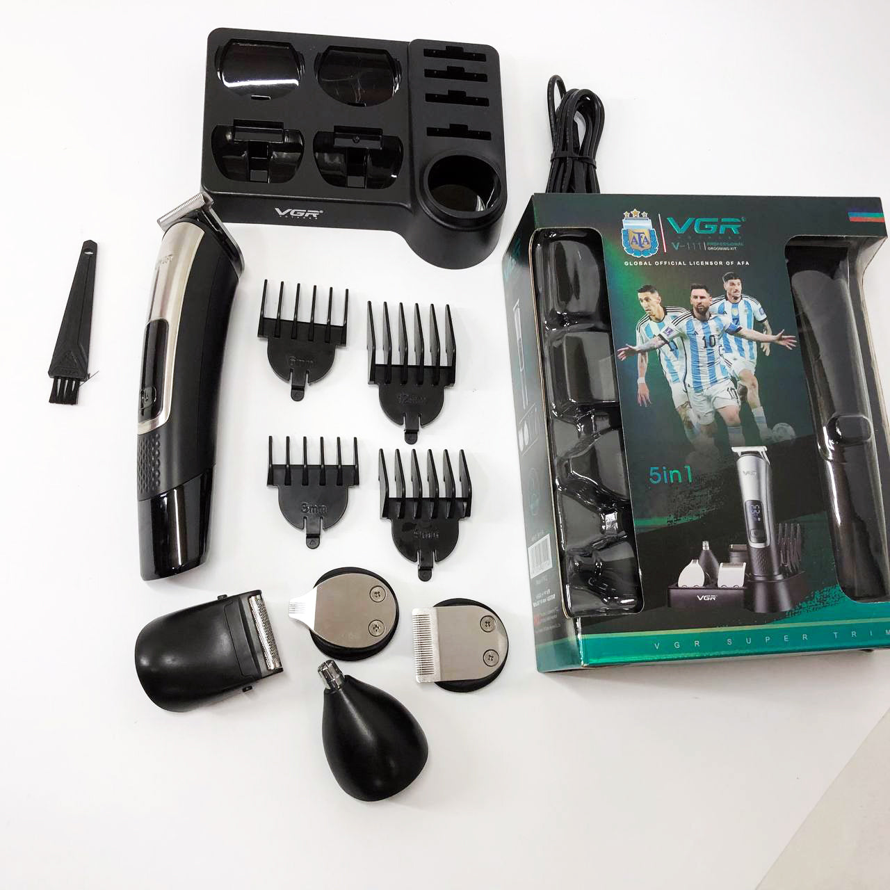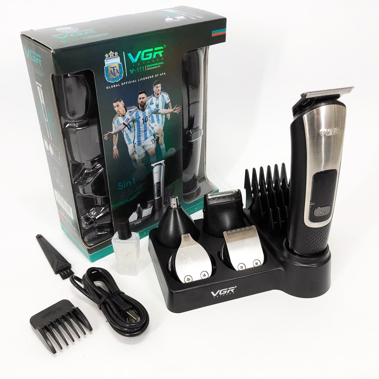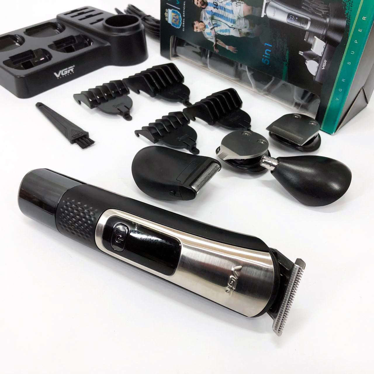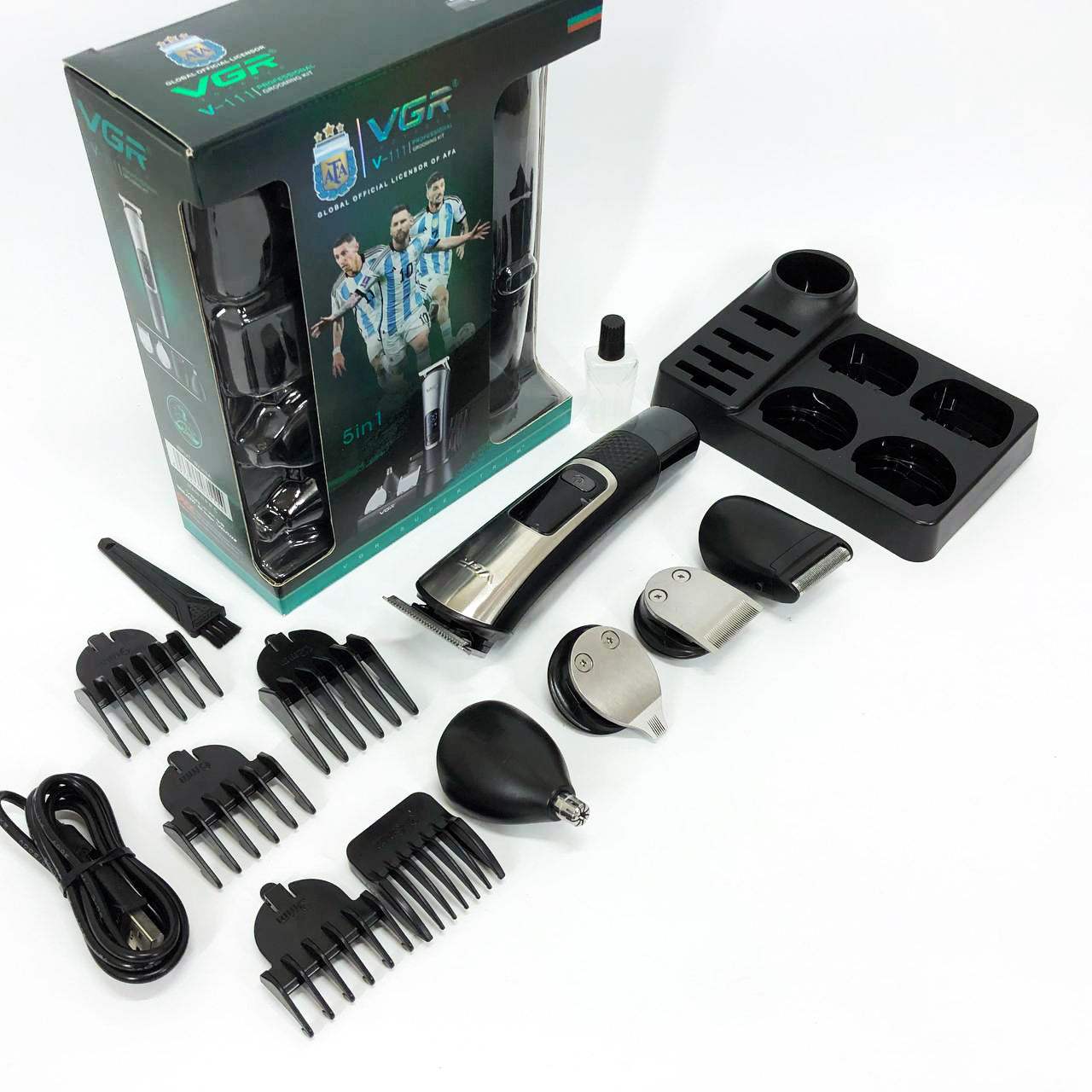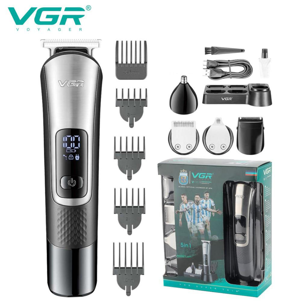 Набор для стрижки VGR 5 в 1 V-111, 9 насадок, Аккумуляторный универсальный триммер для стрижки