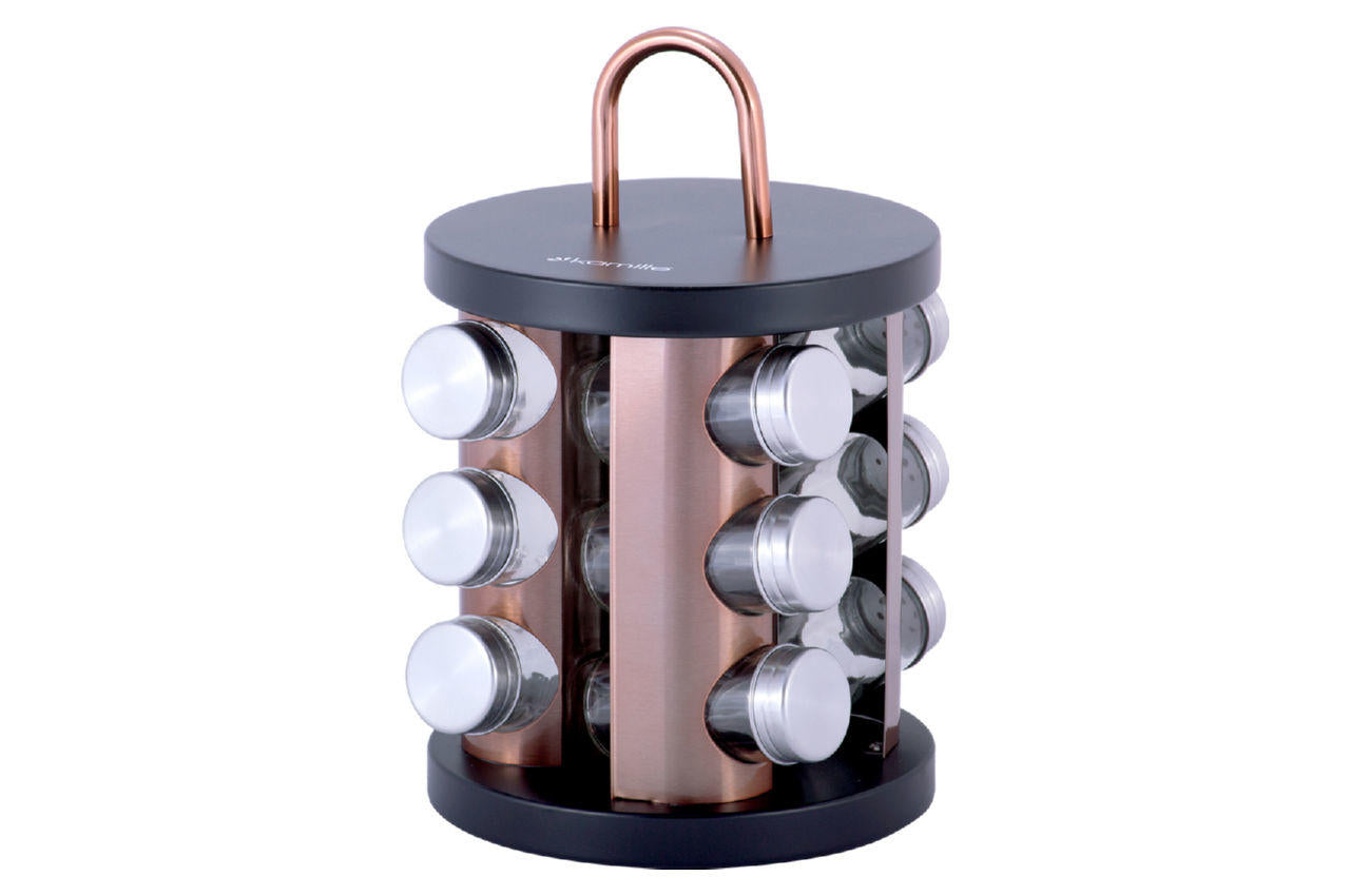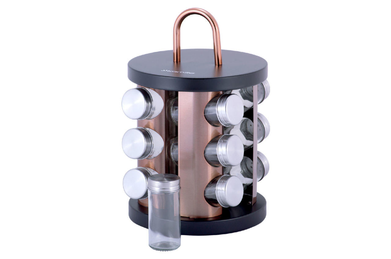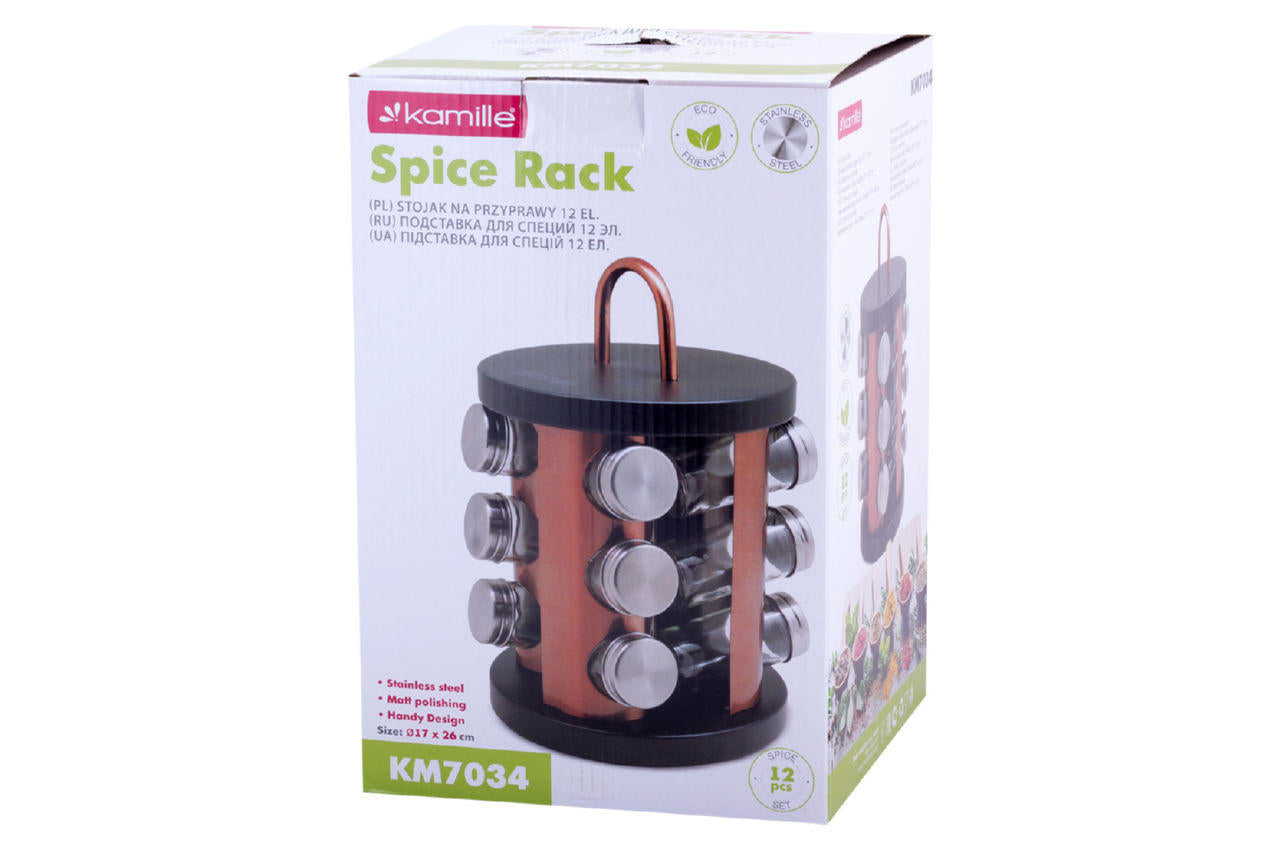 Набор емкостей для специй Kamille - состоит из 12 емкостей для специй объемом 100 мл на стойке, баночки изготовлены из стекла с завинчивающейся стальной крышкой. Удобно размещаются в четыре ряда (по 3 штуки в ряду) на стальной подставке.