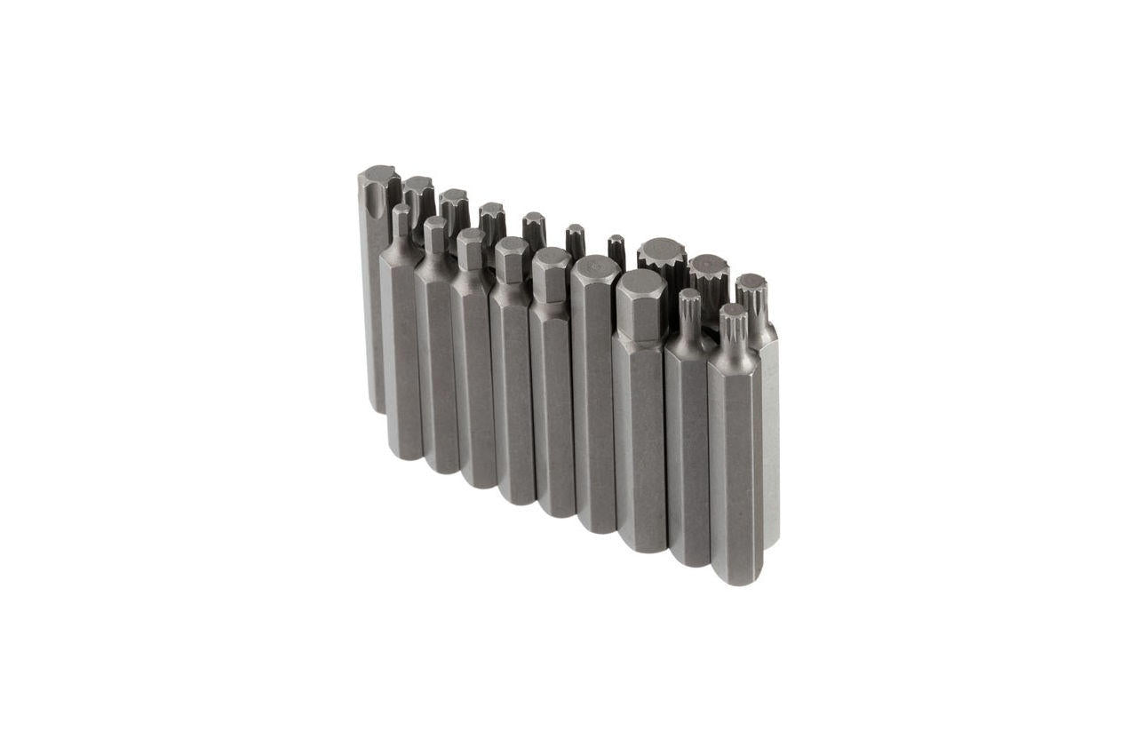 Предназначение Набор насадок предназначен для монтажа и демонтажа различных крепежей с соответствующим типом шлица. Данный комплект сменных бит и шестигранников подходит для использования в ручном инструменте: для отверток, держателей, трещоток, так и в электроинструменте: для дрелей, шуруповертов. Материал изготовления Все насадки изготовлены из высококачественной закаленной Cr-V стали. Присадки хрома и ванадия в составе повышают выносливость, стойкость к критическим нагрузками и защищают насадки от появления коррозии. Отличаются повышенной надежностью, прочностью и долгим сроком эксплуатации. Кейс Весь набор помещен в прочный металлический кейс, который закрывается защелку из металла. Удобно транспортировать и хранить набор, все насадки размещены в персональных пронумерованных ячейках - вы быстро найдете необходимую биту. Комплектация Набор состоит из 40 предметов. Разнообразие бит и шестигранников (TORX, HEX, Spline) в двух размерах 30 и 75 мм позволяют эффективно работать в труднодоступных местах и гарантируют надежное сцепление со шлицом крепежа. TORX 30 мм: T20, T25, T30, T40, T45, T50, T55; 75 мм: T20, T25, T30, T40, T45, T50, T55; HEX: 30 мм: H4, H5, H6, H7, H8, H10, H12; 75 мм: H4, H5, H6, H7, H8, H10, H12; Spline: 30 мм: M5, M6, M8, M10, M12; 75 мм: M5, M6, M8, M10, M12; Переходники 10 мм - 1/2, 3/8". Количество единиц в наборе: 40 ед.; Переходник: 1/2", 3/8"