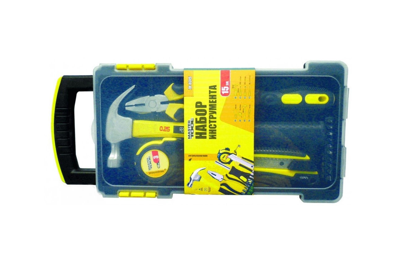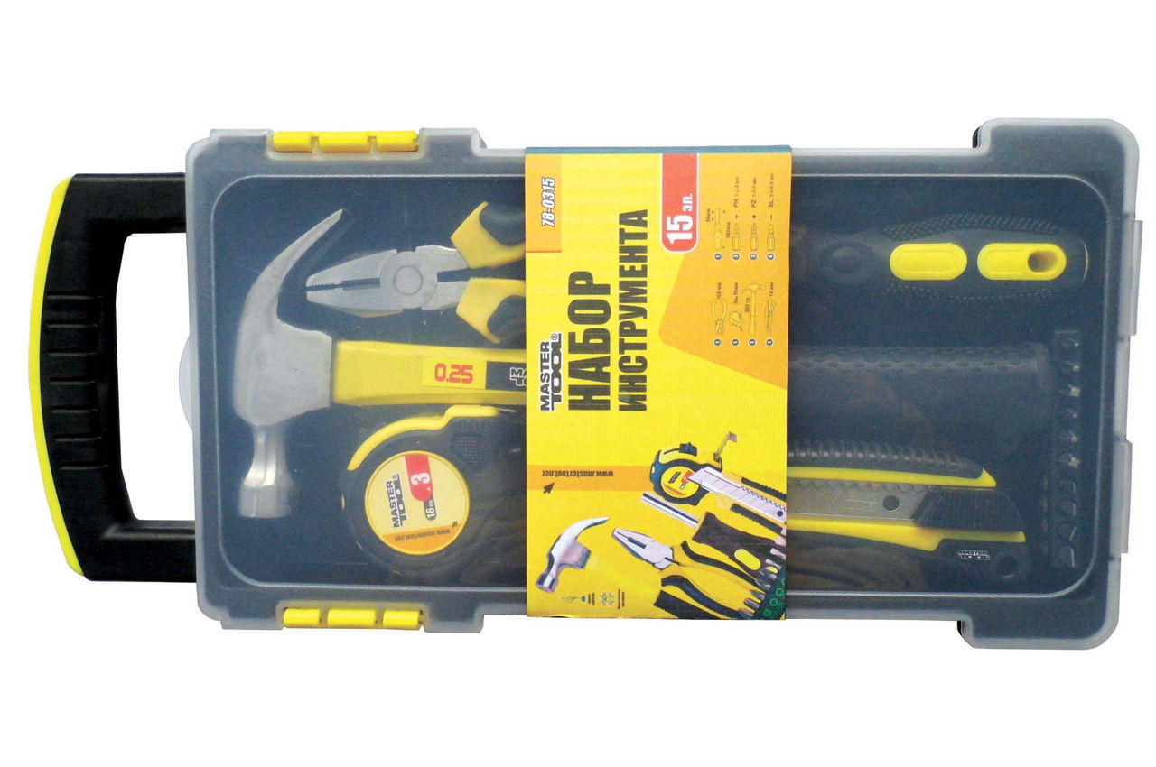 В наборе: пассатижи 160 мм, рулетка 3 м х 16 мм, молоток 225 г, нож, лезвие 18 мм, держатель для бит 160 мм, биты 25 мм (РН1, PH2, PH3, РZ1, PZ2, PZ3, SL3, SL4, SL5, SL6).