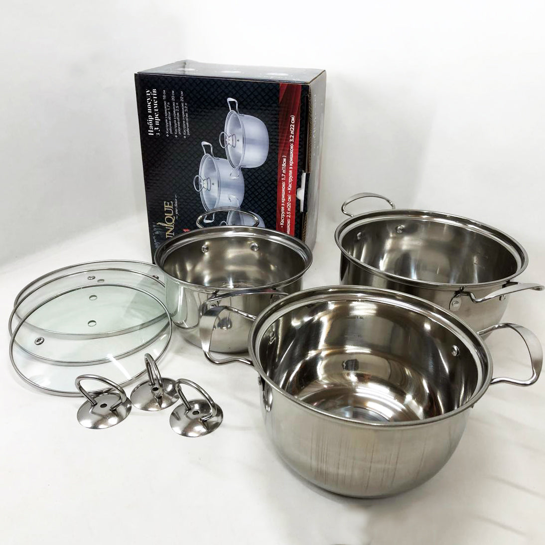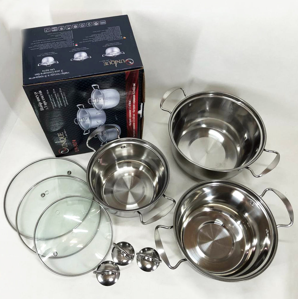 Набор кастрюль из нержавеющая стали с крышками UNIQUE UN-5074, набор посуды для электрических плит