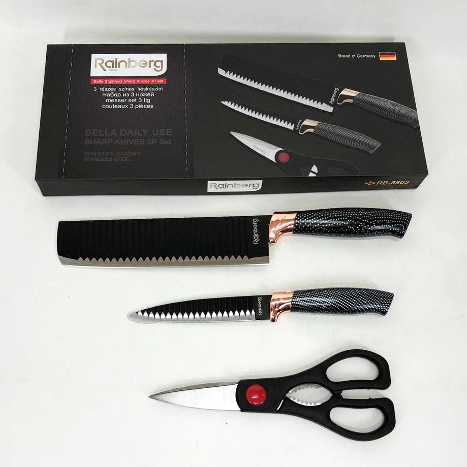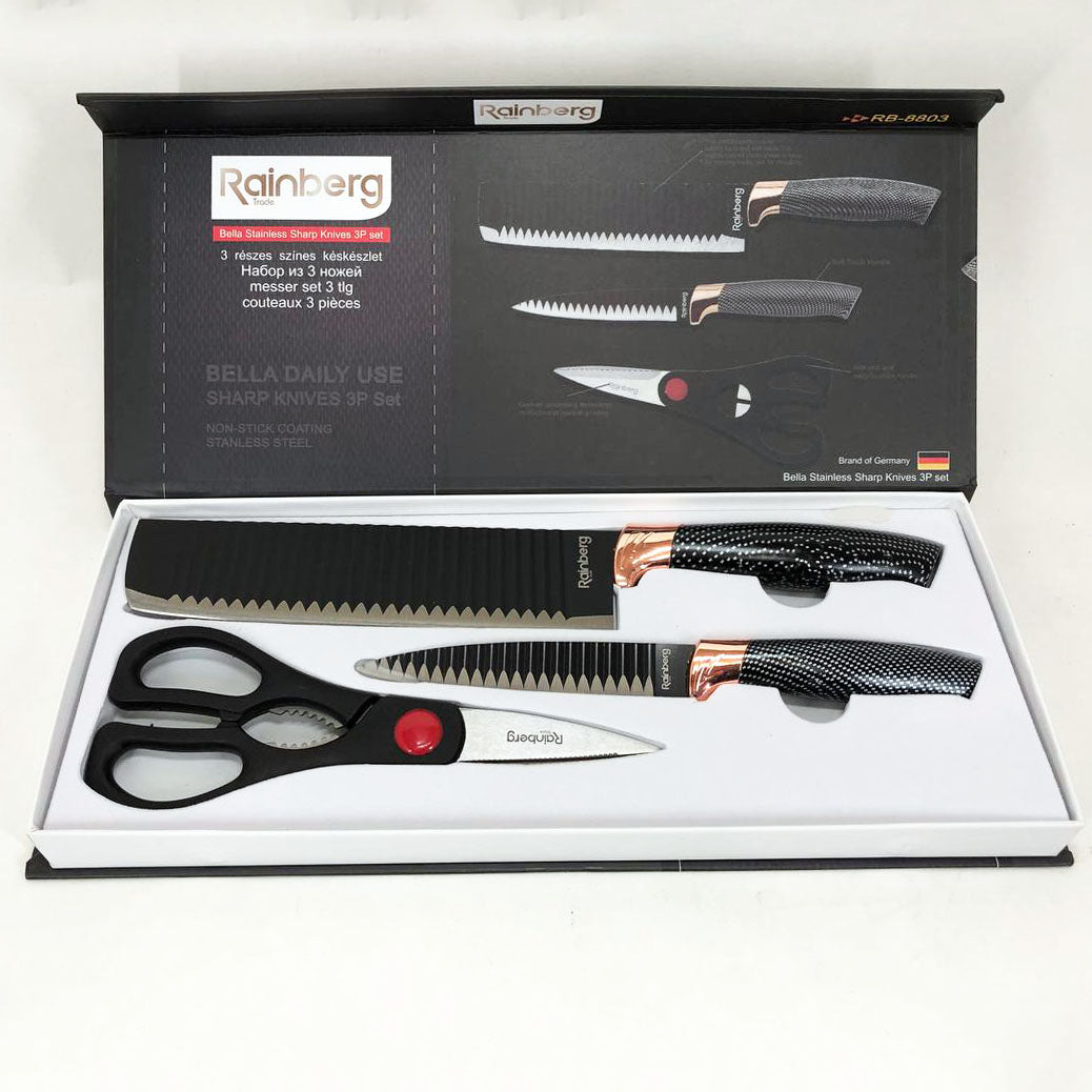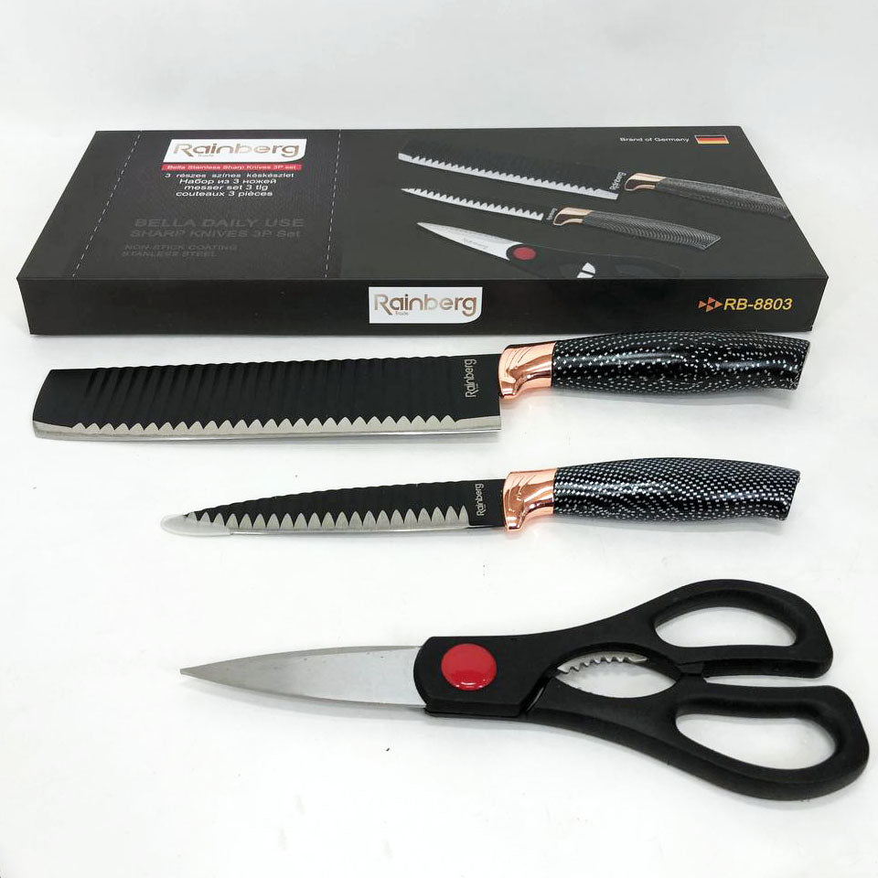 Набор кухонный ножей Rainberg RB-8803 3 в 1 из нержавеющей стали с керамическим покрытием