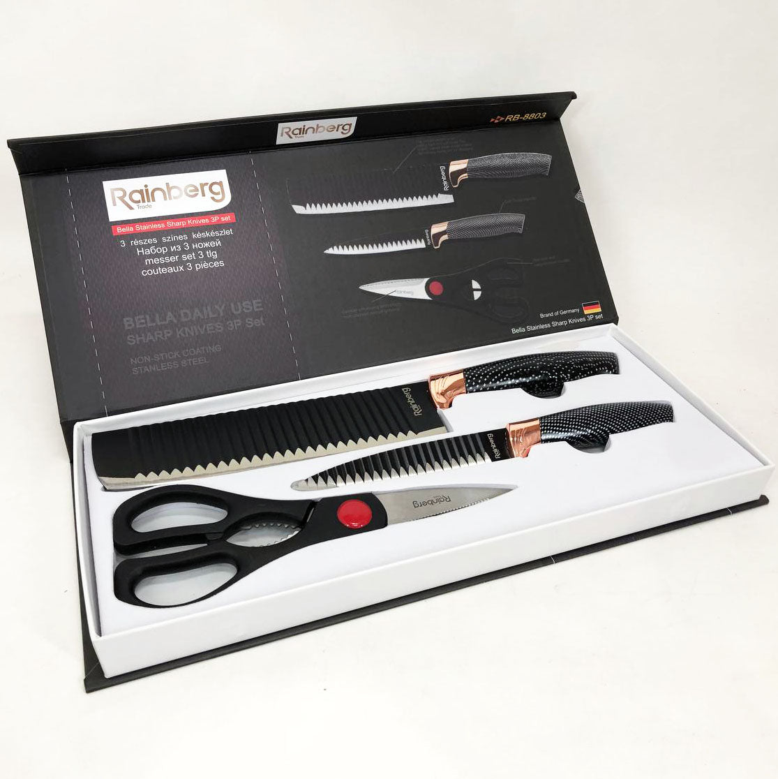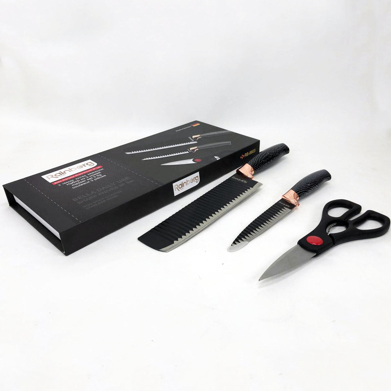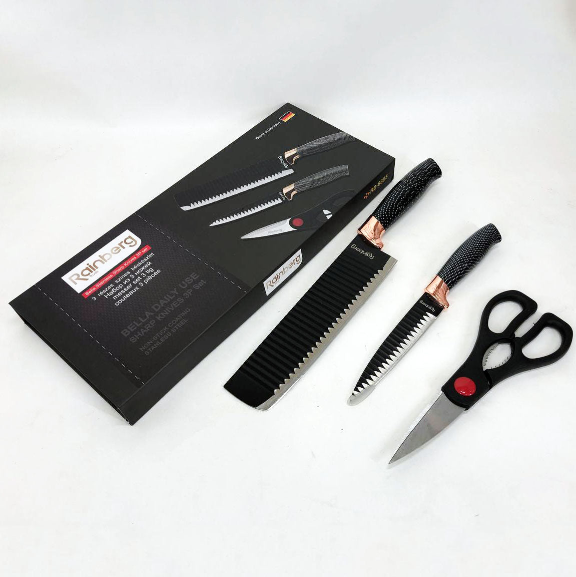 Набор кухонный ножей Rainberg RB-8803 3 в 1 из нержавеющей стали с керамическим покрытием