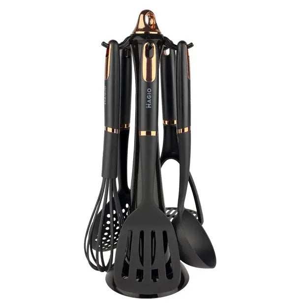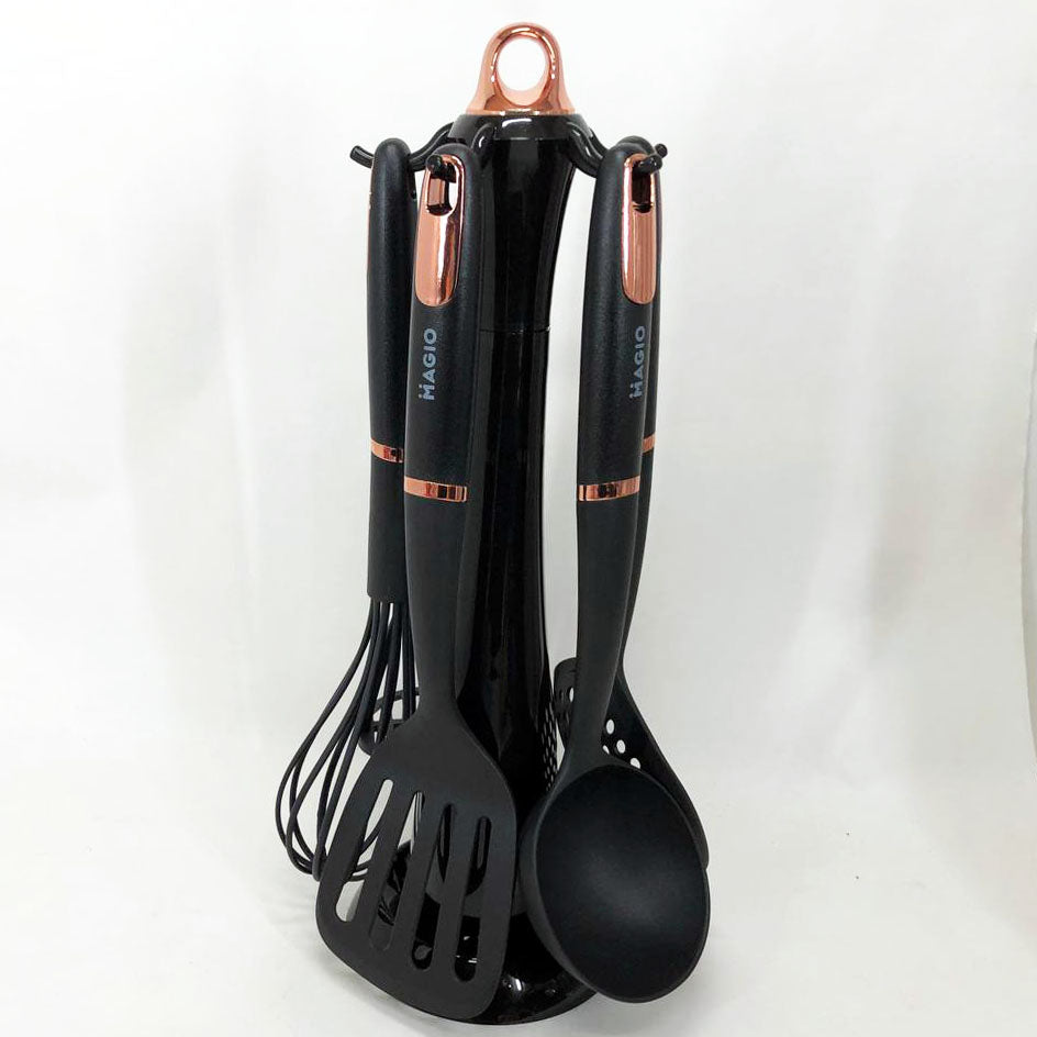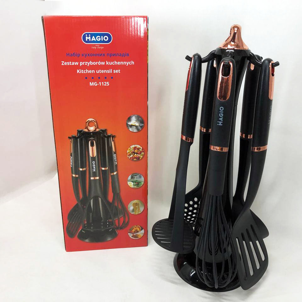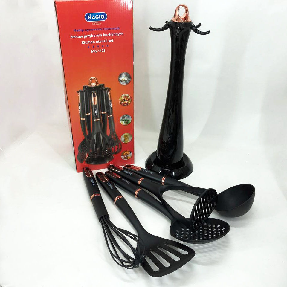 Набор кухонный MG-1125 — практичные принадлежности из пластика и нейлона. Идеально подходит для всех ваших повседневных кулинарных потребностей. Благодаря подставке можно легко хранить их на кухонной столешнице.