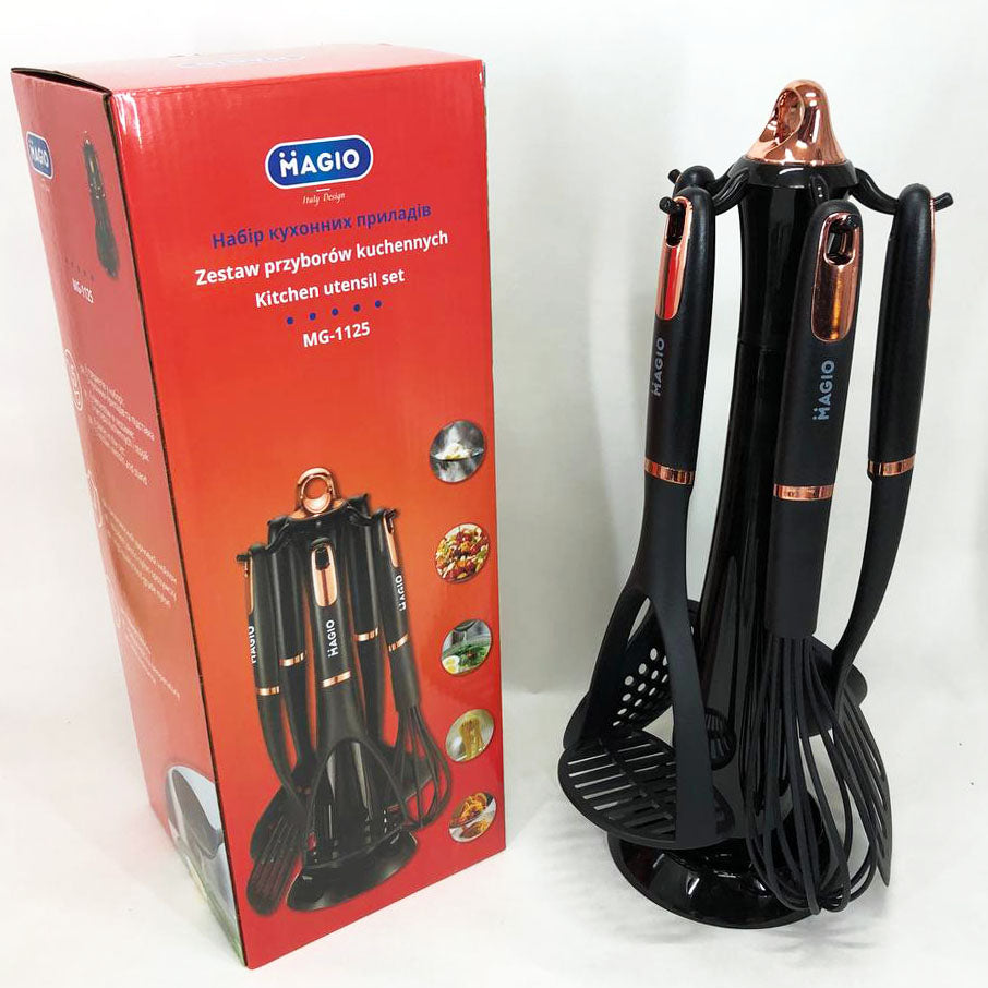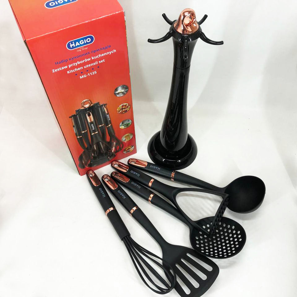 Набор кухонных приборов Magio MG-1125, набор поварешек на подставке, набор силиконовых приборов для кухни