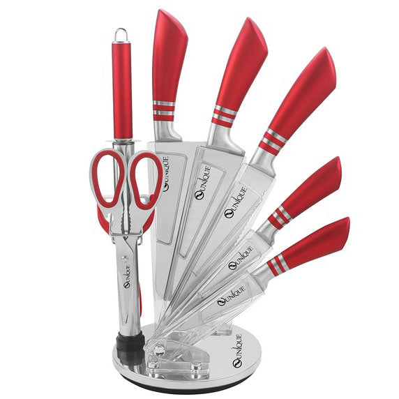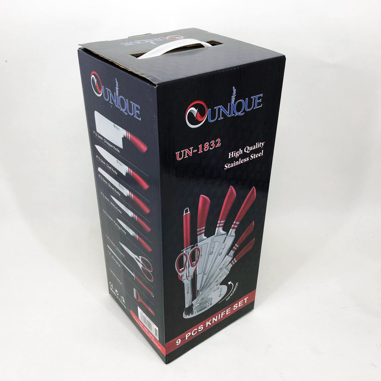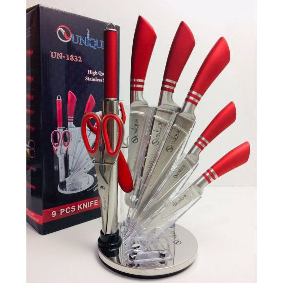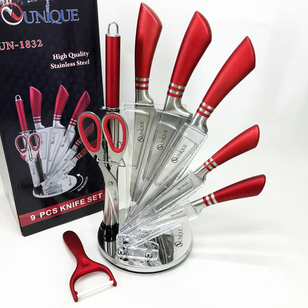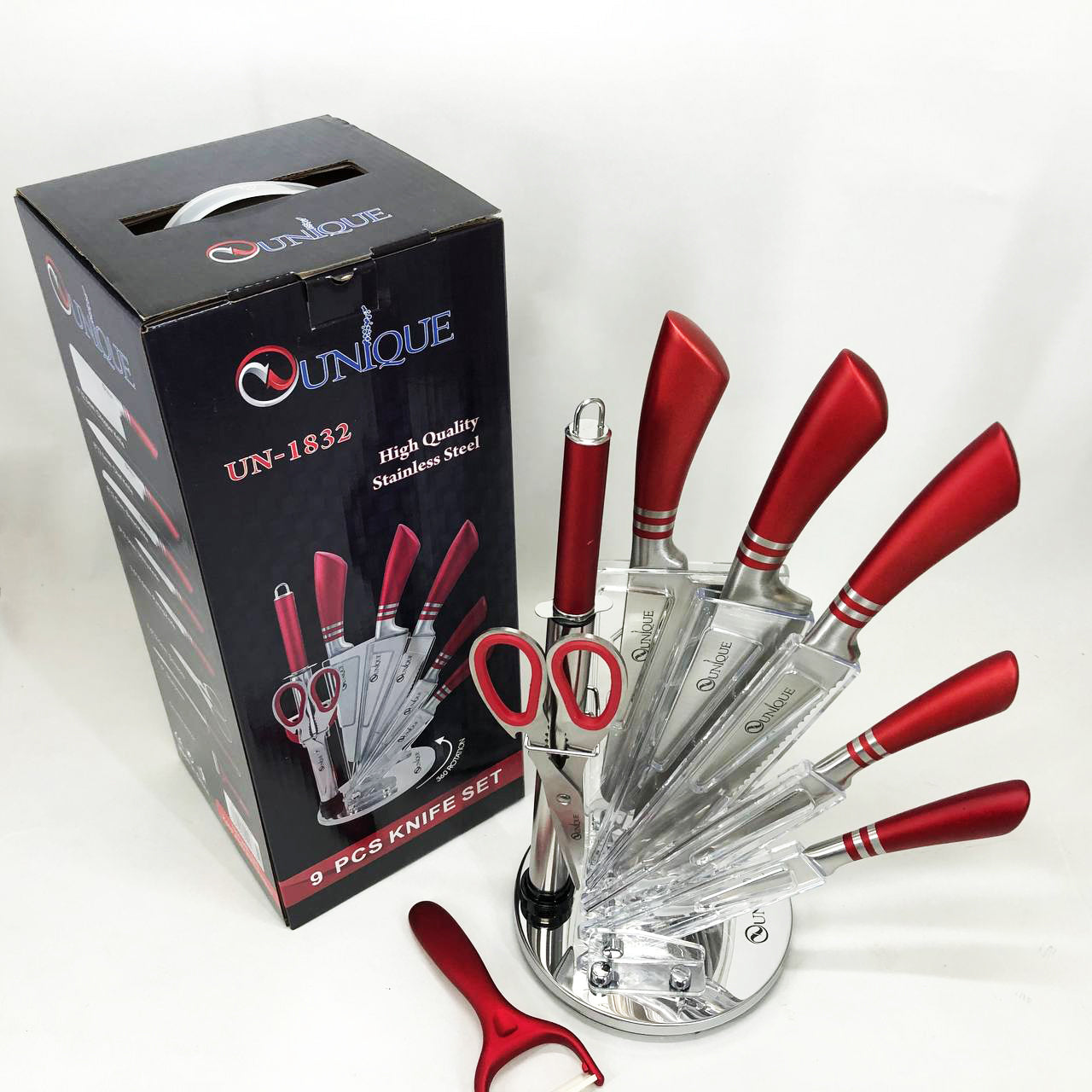 Набор ножей UNIQUE UN-1832 с подставкой 9 предметов овощечистка точилка ножницы Нержавеющая сталь