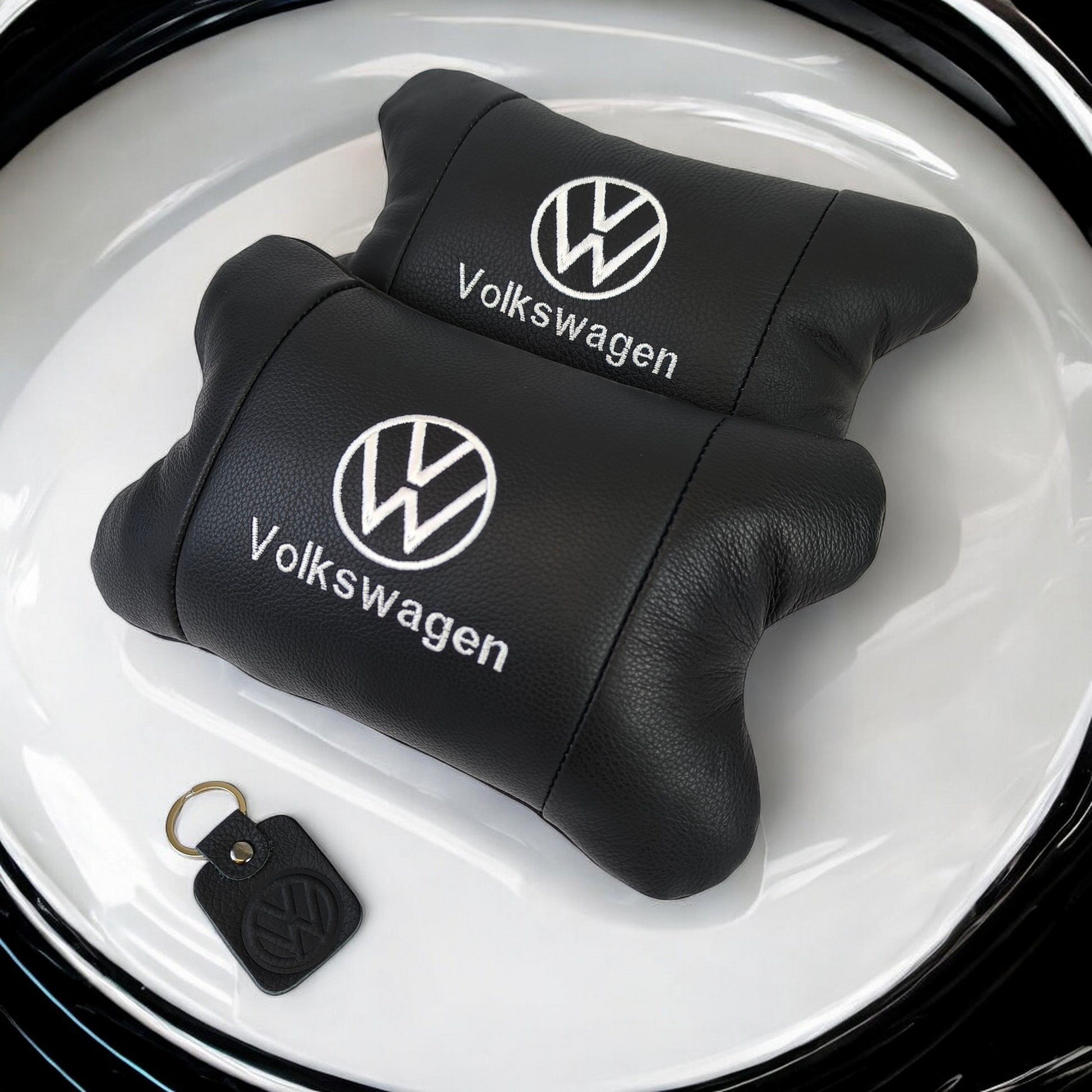 Набор подушек 2шт в авто Volkswagen из натуральной кожи, на подголовник в машину, Автомобильная подушка