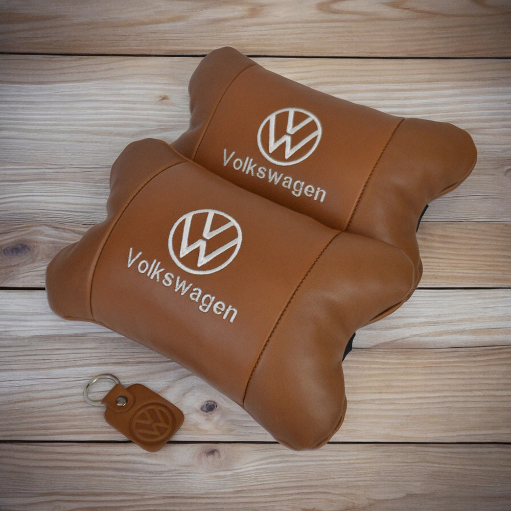 Набор подушек 2шт для автомобиля Volkswagen из натуральной коричневой кожи. Подушки на подголовник