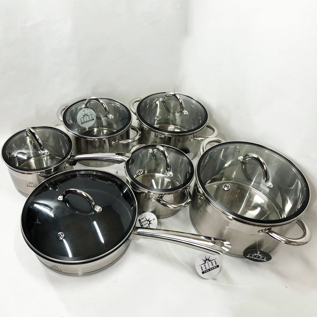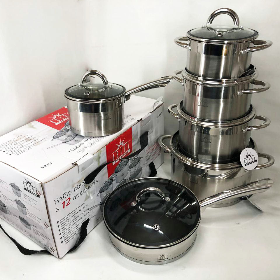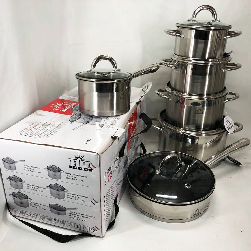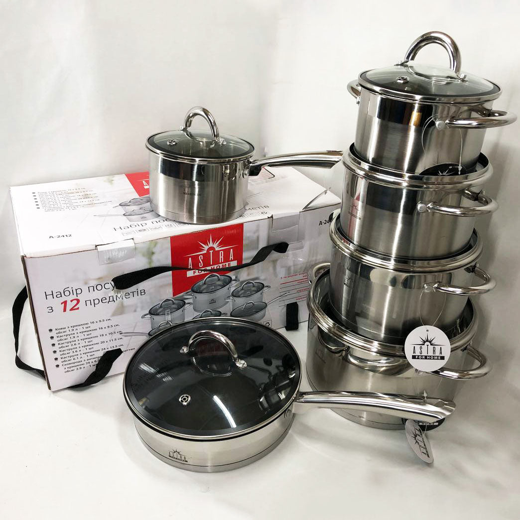 Набор посуды 12 предметов ASTRA A-2412, набор казанов, набор кастрюль из нержавеющей стали
