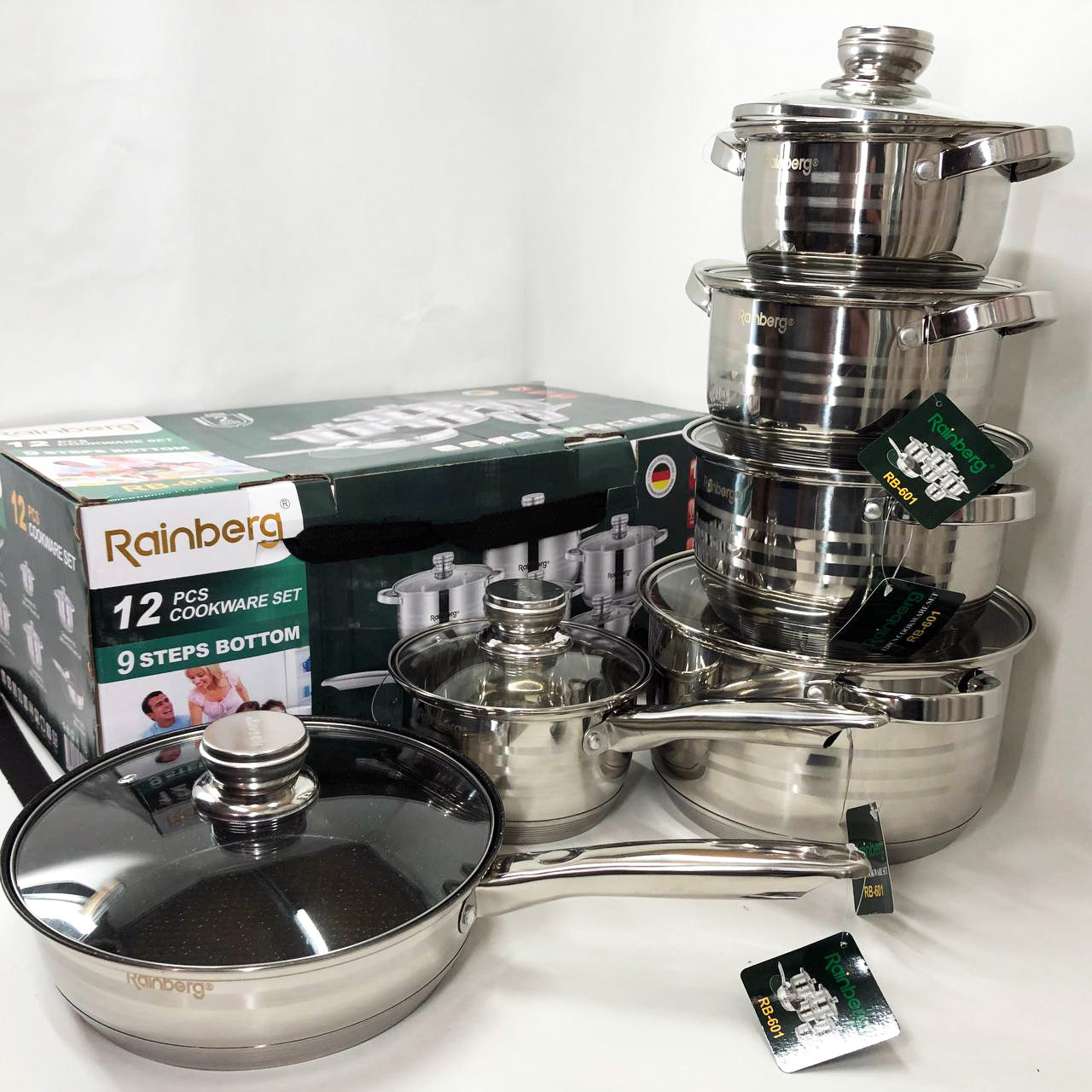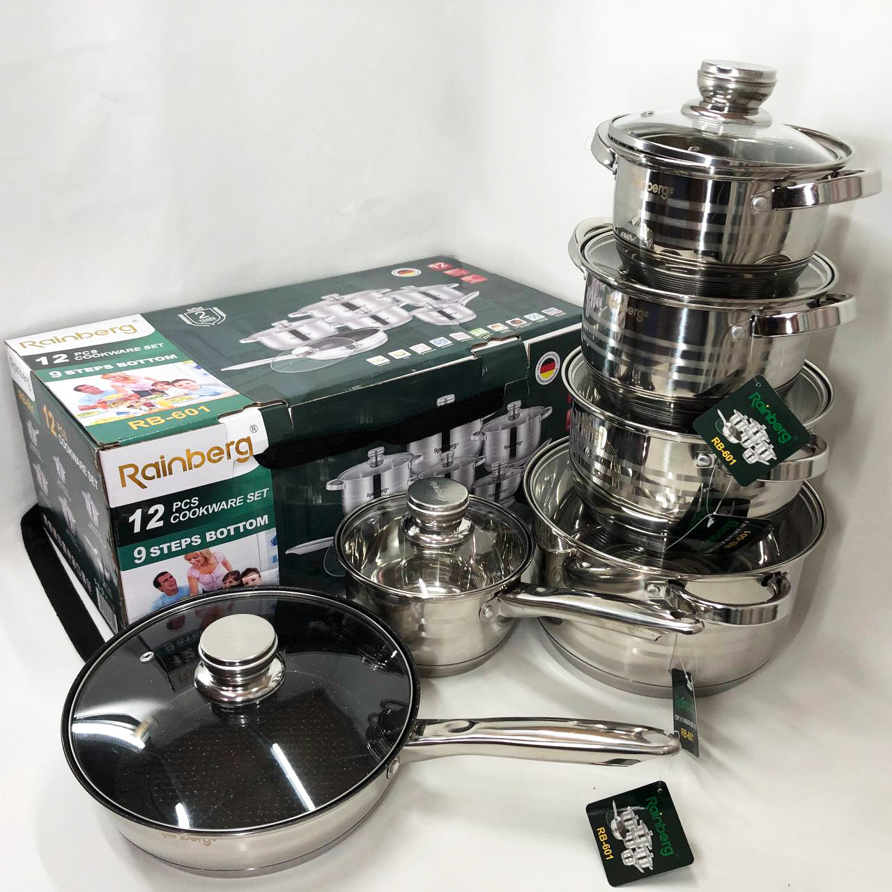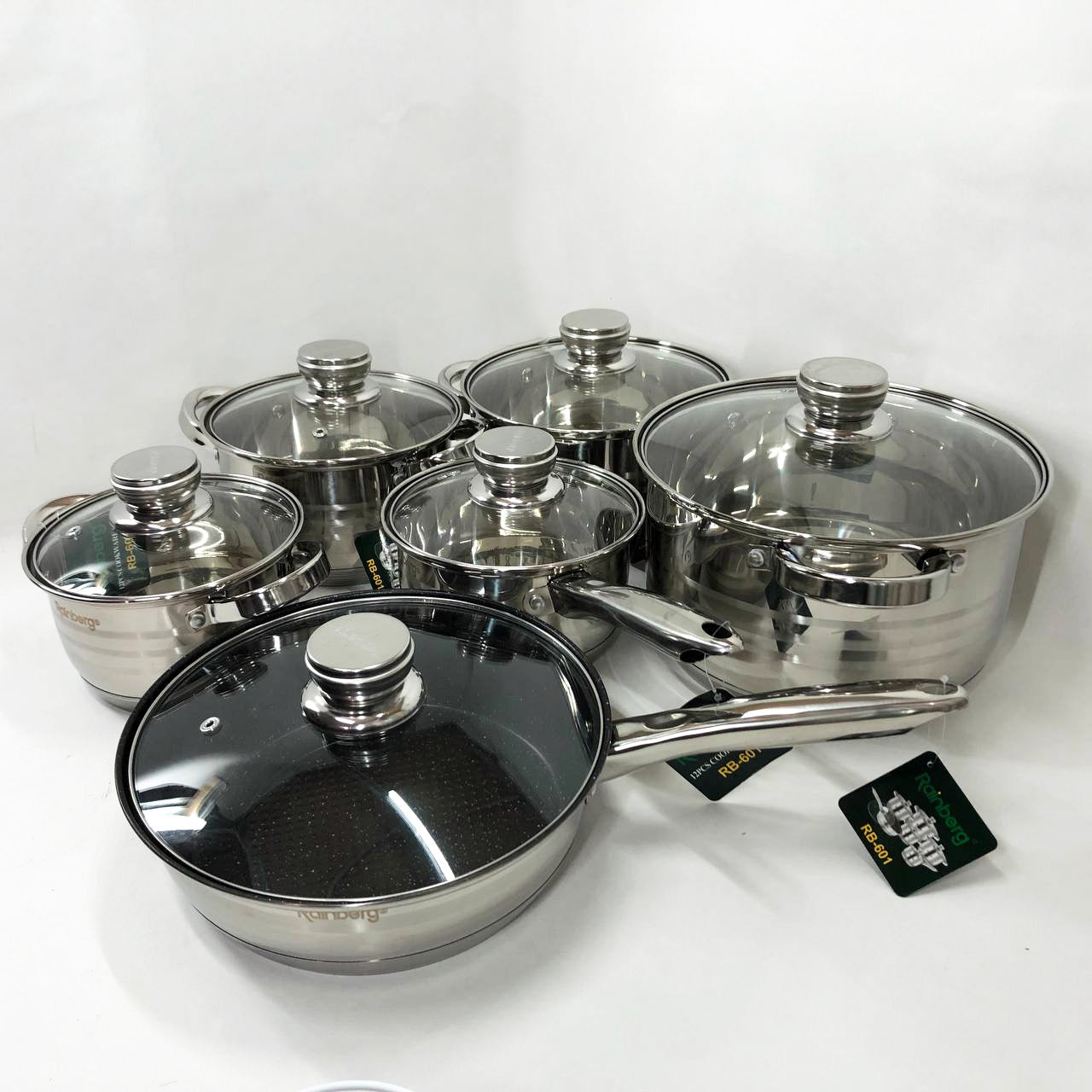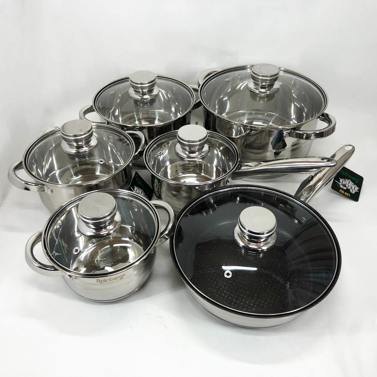 Набор посуды Rainberg RB-601 (12 предметов) из нержавеющей стали, кастрюли из нержавейки для плиты