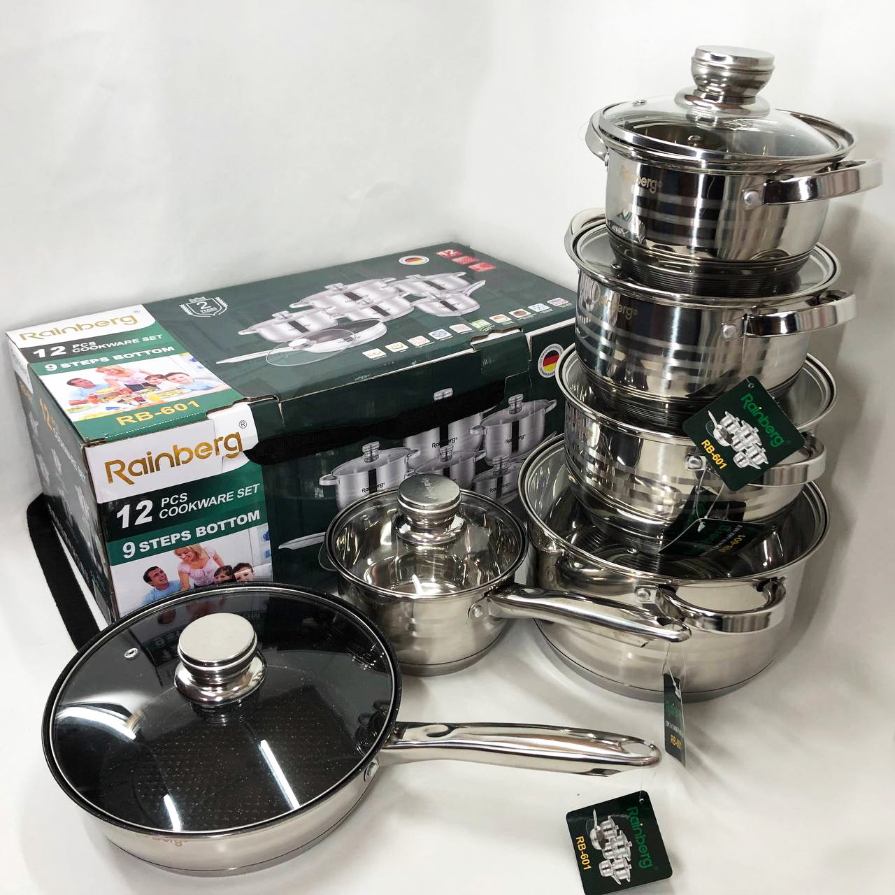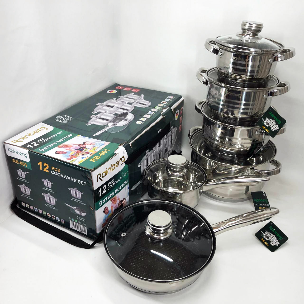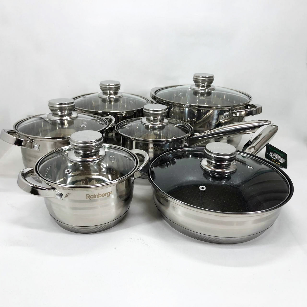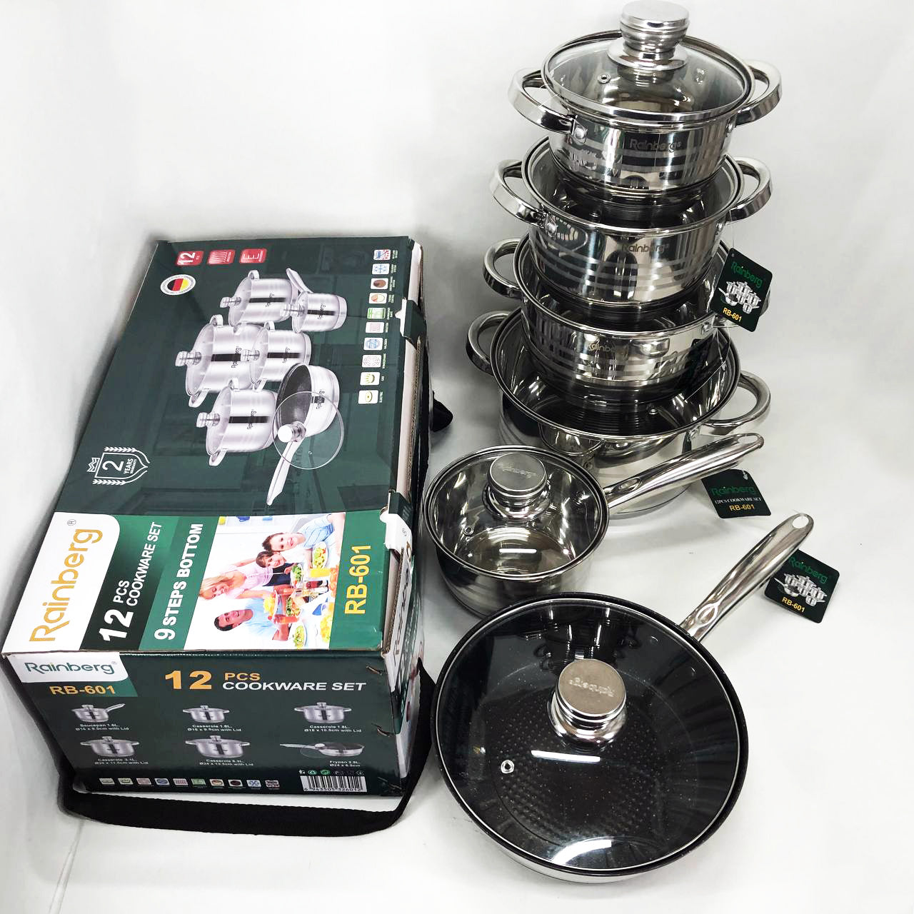 Набор посуды Rainberg RB-601 (12 предметов) из нержавеющей стали, кастрюли из нержавейки для плиты