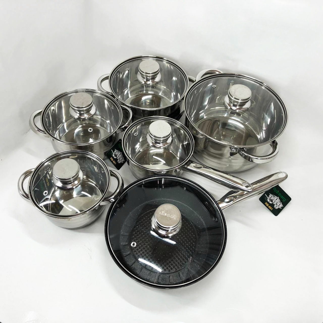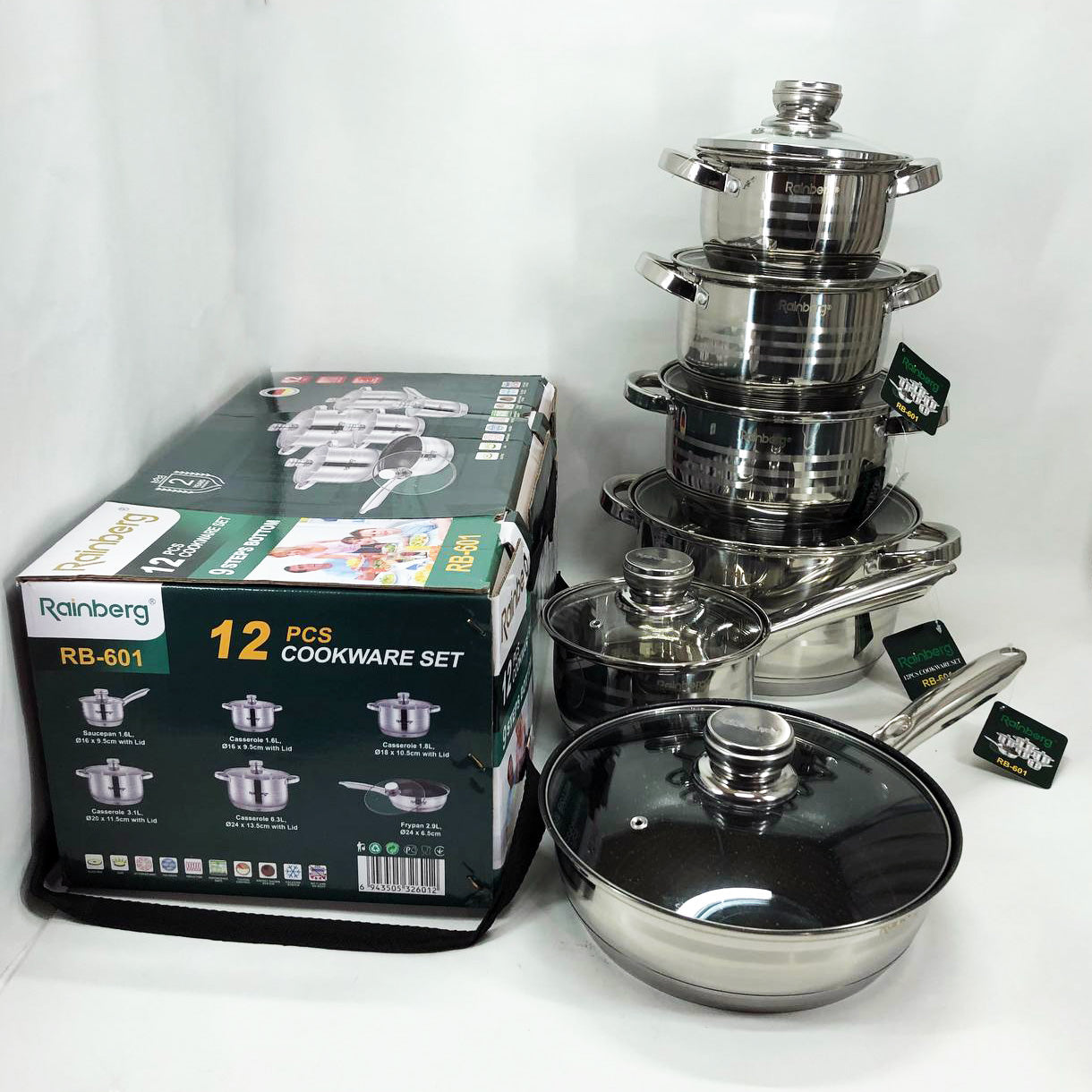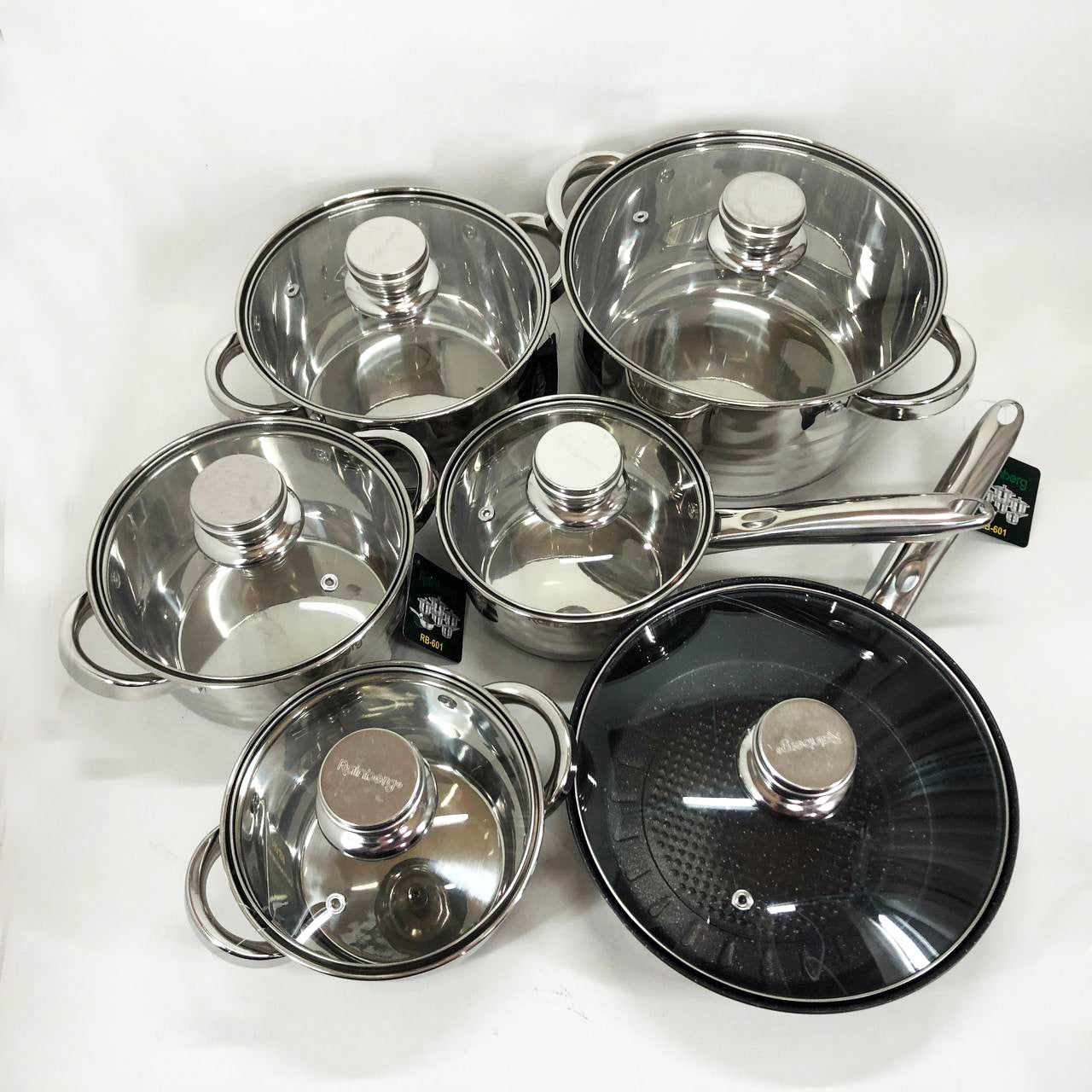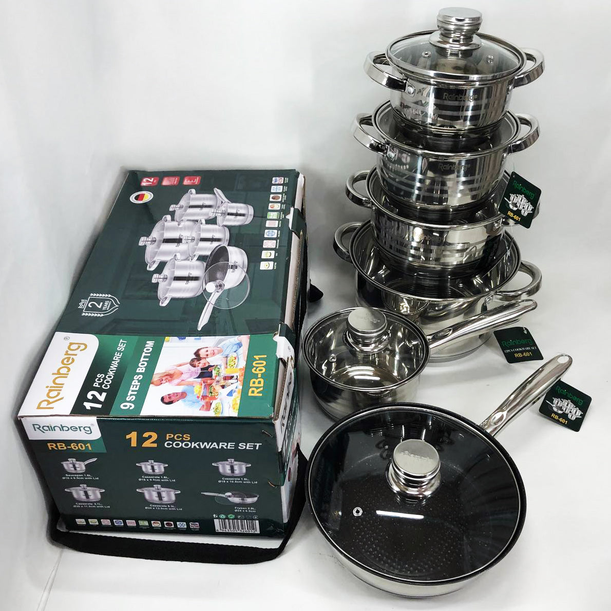 Набор посуды Rainberg RB-601 (12 предметов) из нержавеющей стали, кастрюли из нержавейки для плиты