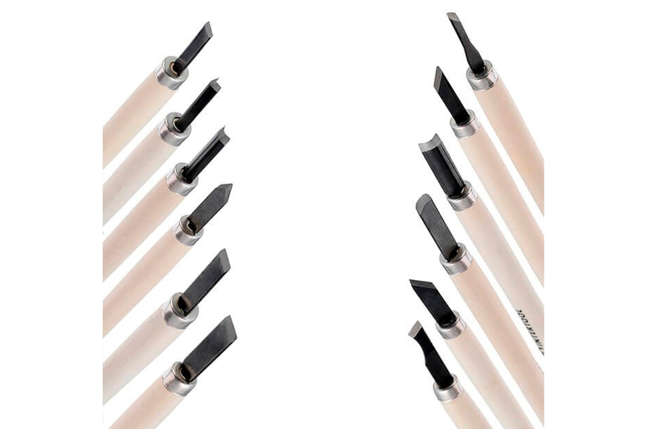 Резцы изготовлены из качественной инструментальной стали, отличающейся прочностью и долговечностью. Острые кромки резцов обеспечивают легкую резьбу. Ручки изготовлены из дерева, гарантируют удобный восторг и комфортную работу.