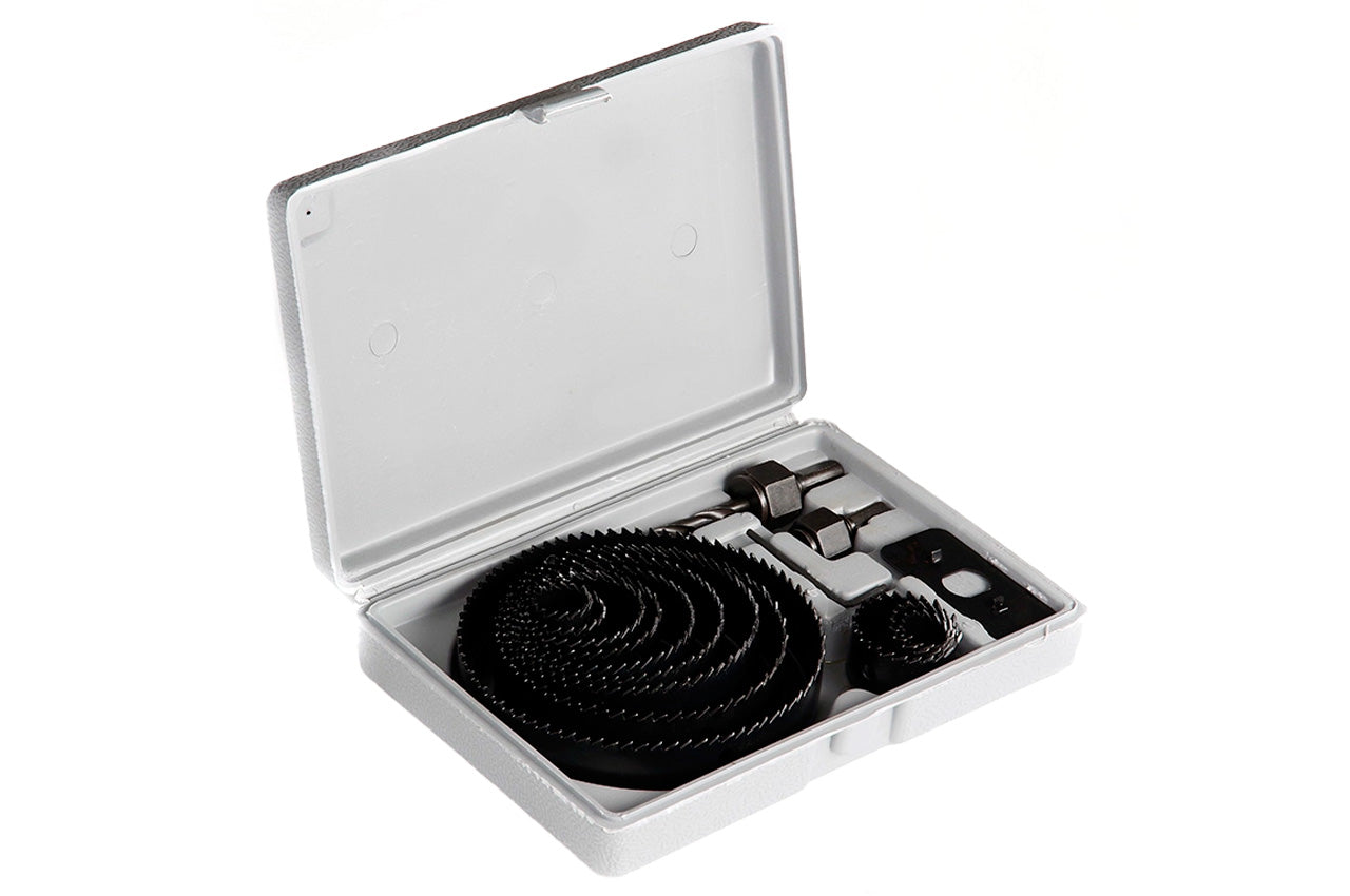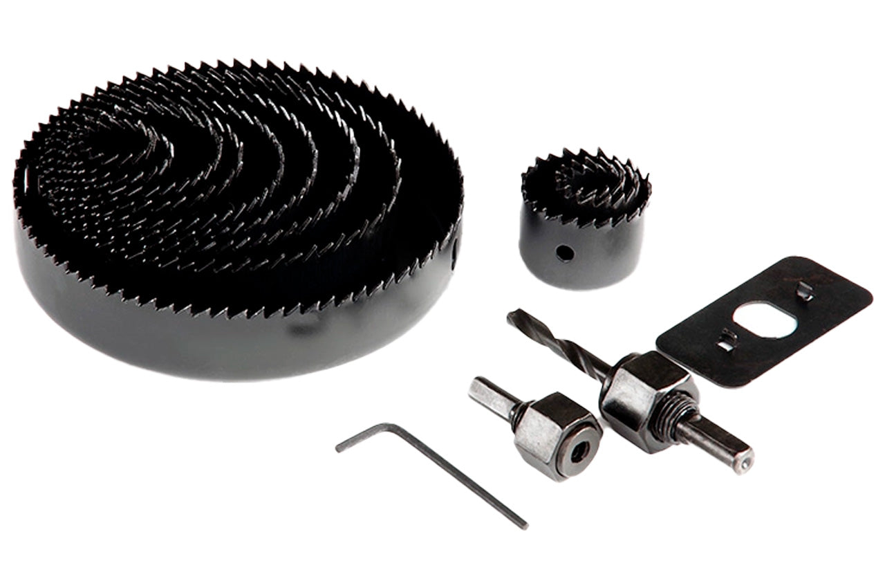 Набор корончатых сверл (фрез), предназначенный для сверления сквозных отверстий диаметром от 19 до 127 мм, в древесине и ее производных, а также в пластике и гипсокартоне. С помощью этого набора Вы легко просверлите отверстия нужного диаметра: под розетки, дверные замки или проходы для коммуникации.