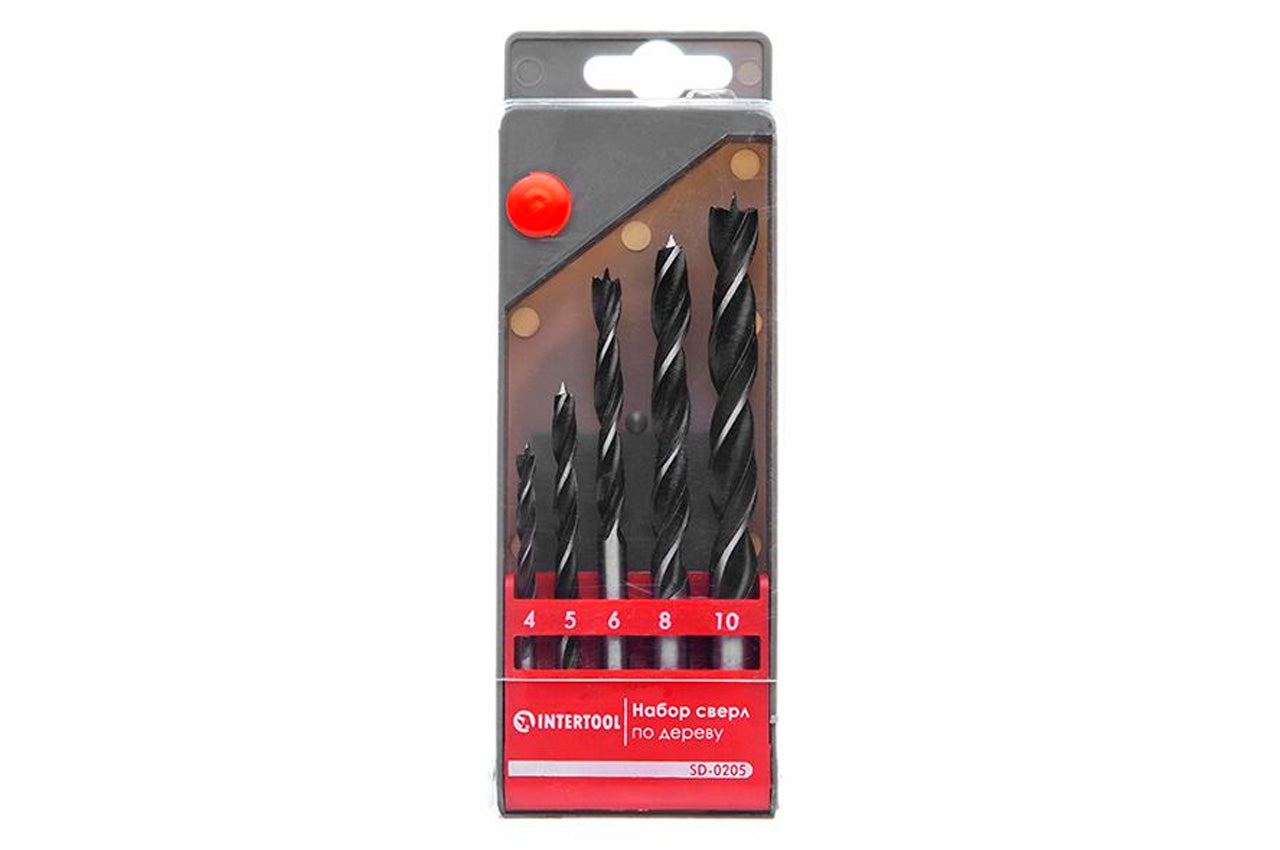 Набор сверл по дереву Intertool - 5 шт. (4, 5, 6, 8, 10 мм)